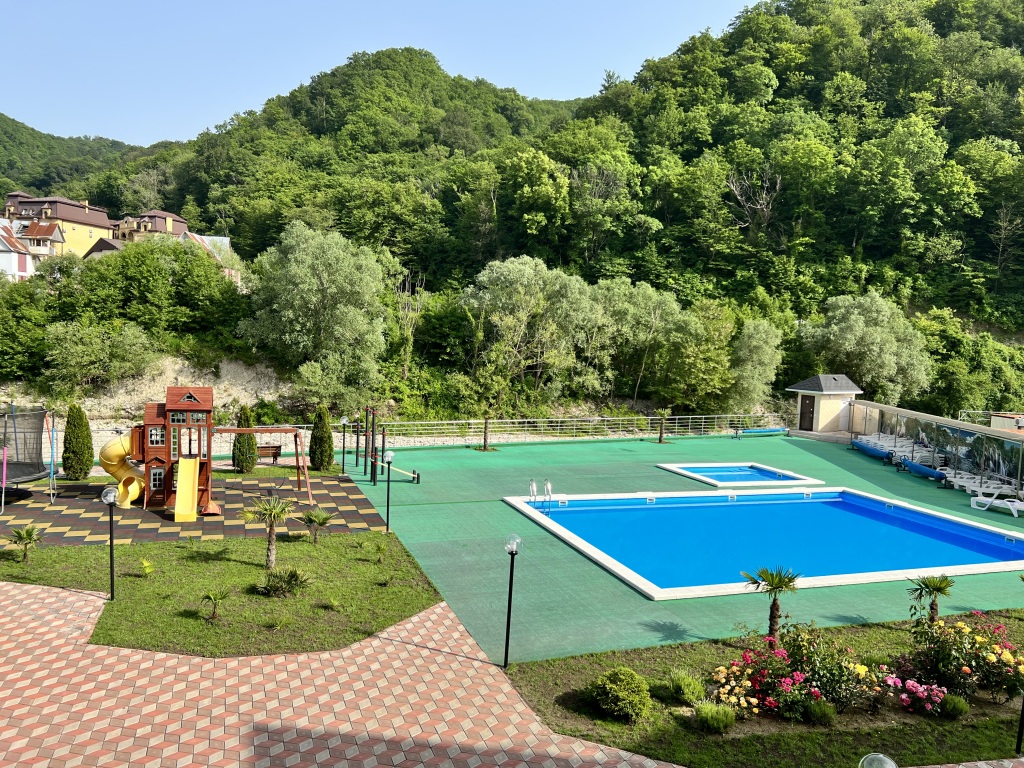 Среди услуг для красоты и здоровья — массажный кабинет. Спортивные гости оценят настольный теннис. Любители водных процедур оценят открытый бассейн. Дети будут рады! Работает детская игровая комната.