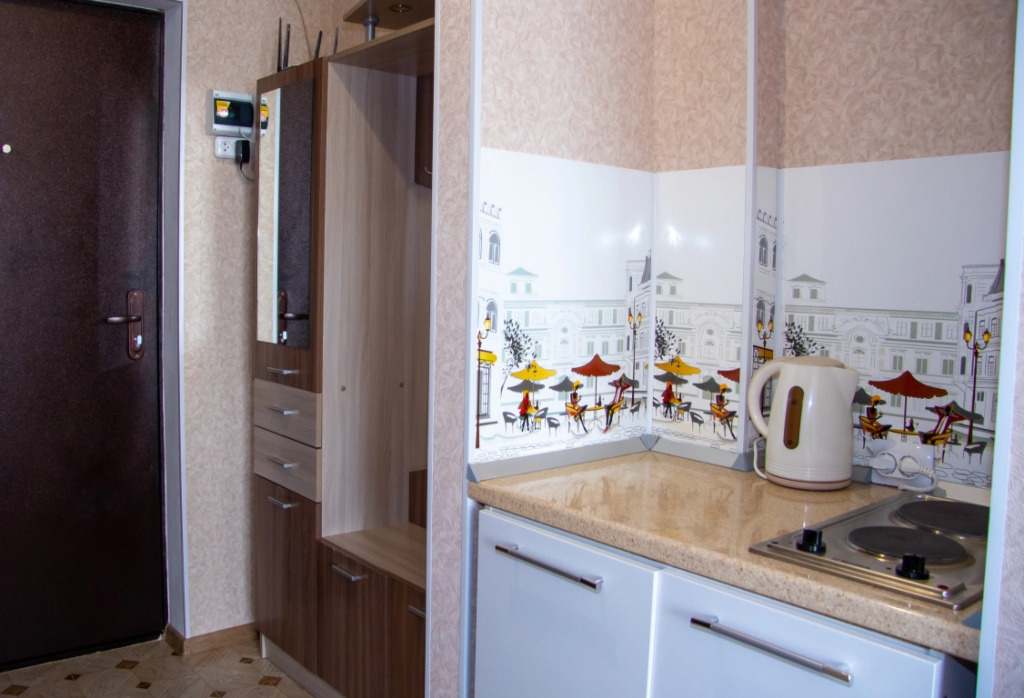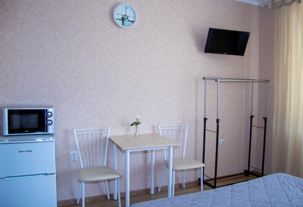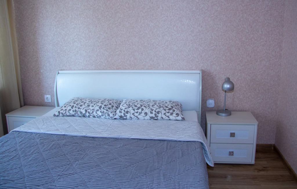 В квартире двуспальная либо две односпальных кровати, кресло-кровать, есть возможность размещения четвертого человека на раскладушке. На кухне сервиз на шесть персон, чашки, стаканы. Стиральная машинка есть во всех апартаментах. Постельное белье и полотенца предоставляются. Уборка в квартире производится самостоятельно. Оснащение зависит от выбранной категории номера.