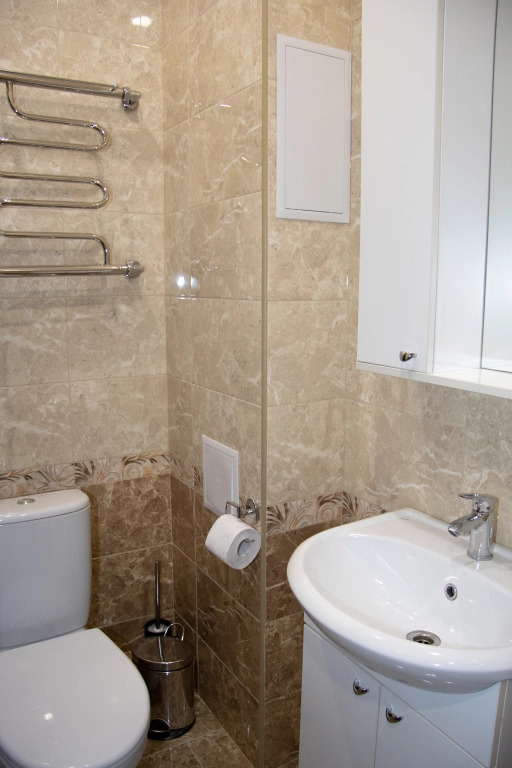 В распоряжении гостей есть две детских площадки и спортивная площадка. Во дворе продуктовые магазины, аптека, магазин хозтоваров.