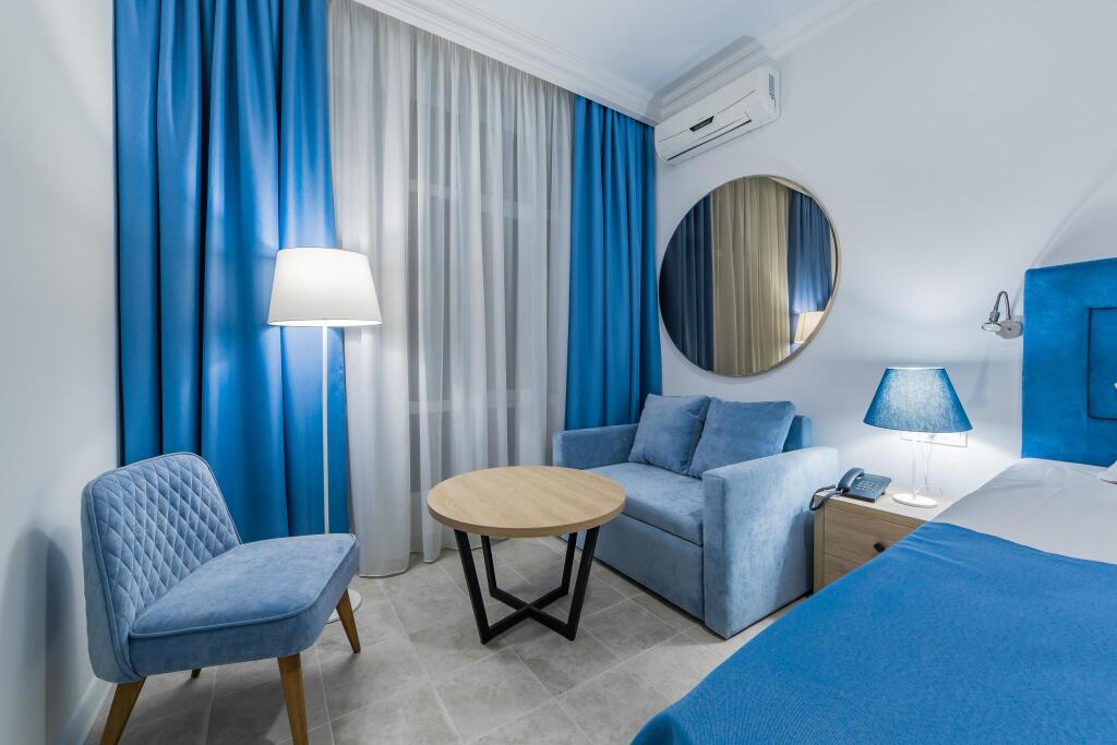 Стоимость размещения на дополнительном месте третьего (пятого для номеров категории «Люкс») взрослого / ребёнка от 5 лет включительно — 35% от стоимости номера.