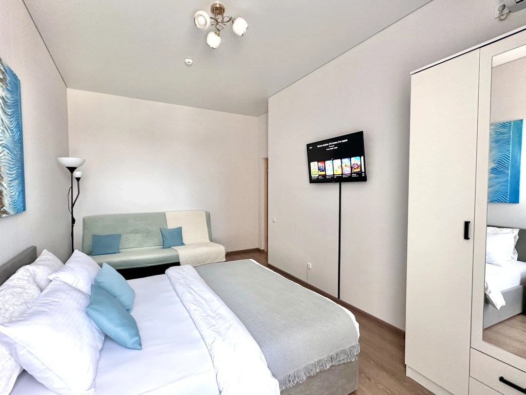 В номере вы найдёте телевизор. Оснащение зависит от выбранной категории номера.