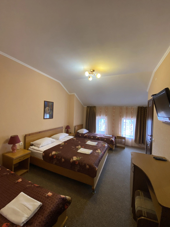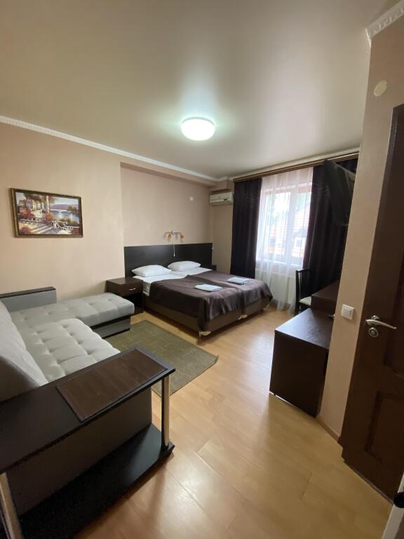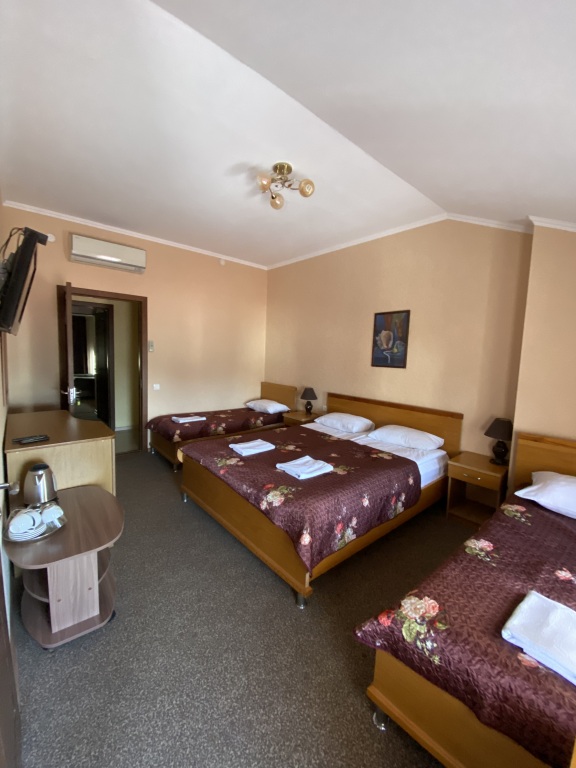 В гостевом доме «Патио» к услугам гостей 2-х, 3-х и 4-местные однокомнатные номера «Стандарт» и два двухкомнатных номера класса «Люкс». Все номера оборудованы телевизором, холодильником, сплит-системой, сейфом, феном, доступом в интернет (Wi-Fi). В тёплое время года можно воспользоваться летней кухней.