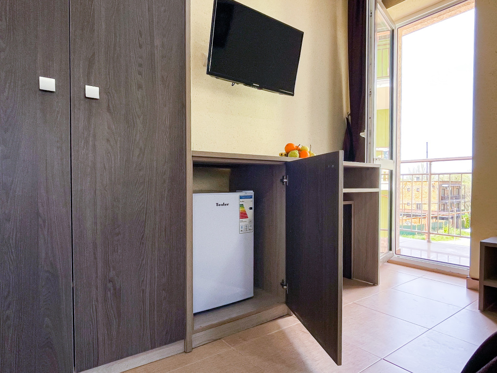 В номере вы найдёте телевизор. Оснащение зависит от выбранной категории номера.