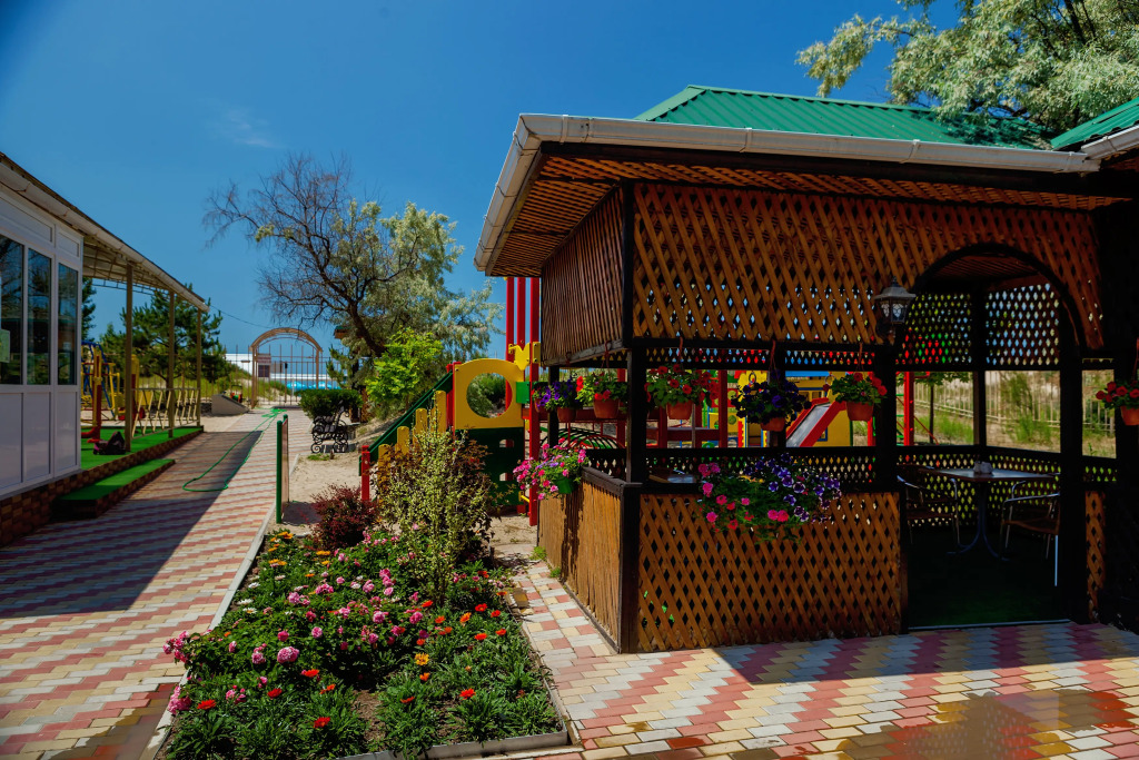 Вход на пляж бесплатный и возможен только для гостей пансионата, в дневное время работают матросы-спасатели. Гости могут бесплатно воспользоваться услугами проката зонтов, лежаков, полотенец, а также раздевалками, душевыми, туалетами и медпунктом.