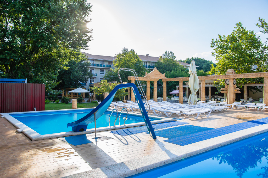 Среди услуг для красоты и здоровья — массажный кабинет и спа-центр. Специально к услугам гостей, не упускающих возможность заняться спортом, дайвинг. Среди развлечений на территории — библиотека и пинг-понг. Здесь будем баловать себя водными процедурами: есть бассейн, аквапарк и открытый бассейн.