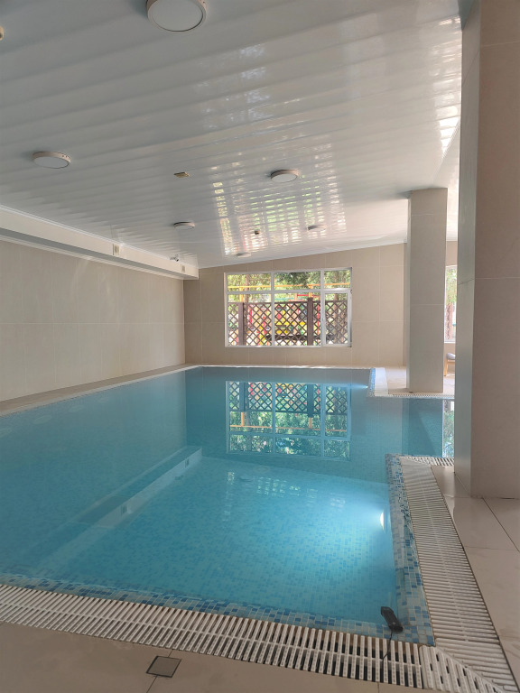 Крытый подогреваемый бассейн, поддерживающий температуру до 24 °C, подходит для купания в любую погоду.