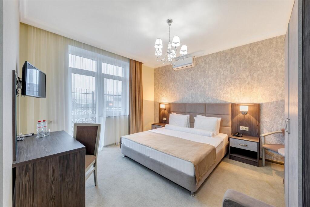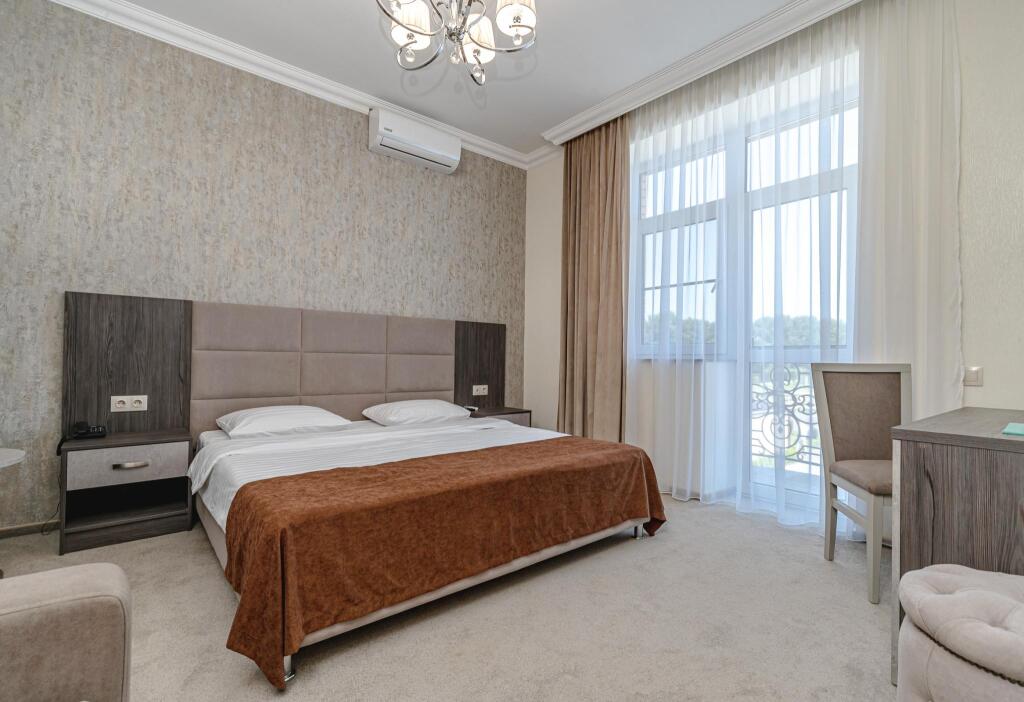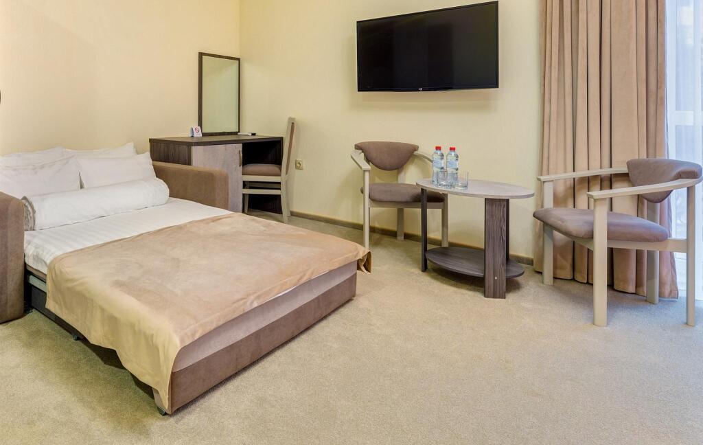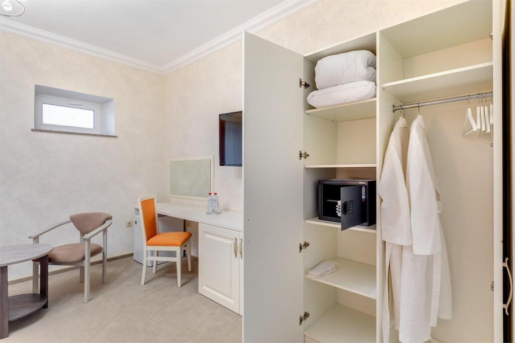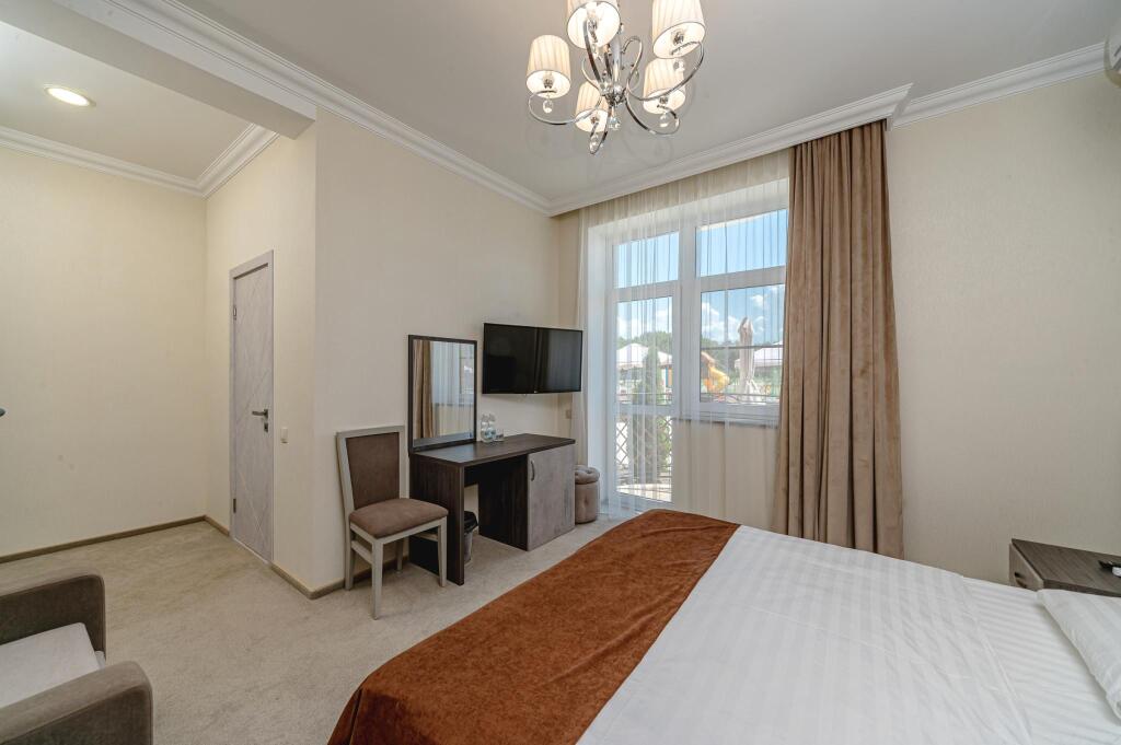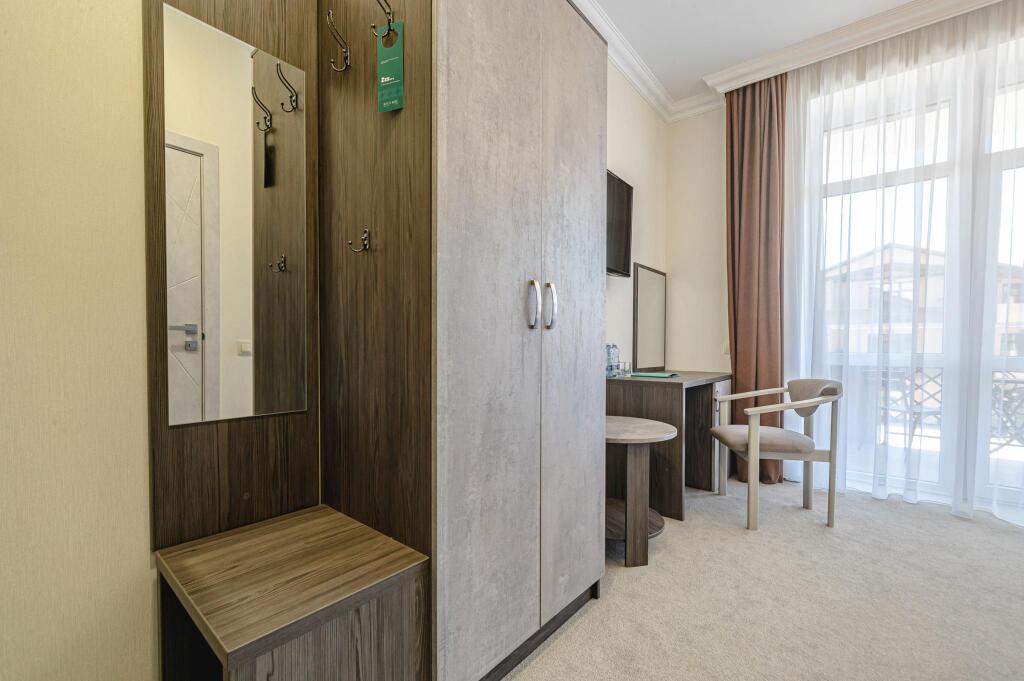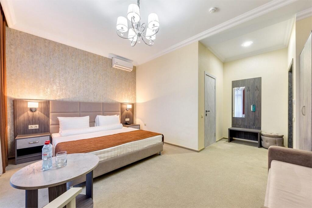 Номер чистый, все необходимое имеется, удивило отсутствие бутилированной воды в номере, при этом воду можно взять на ресепшене и в кафе, не минус просто не привычно.