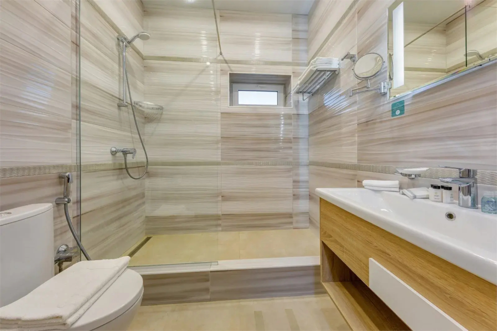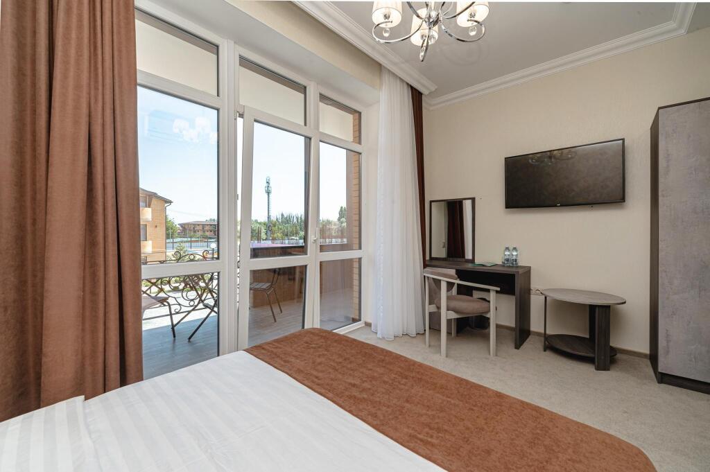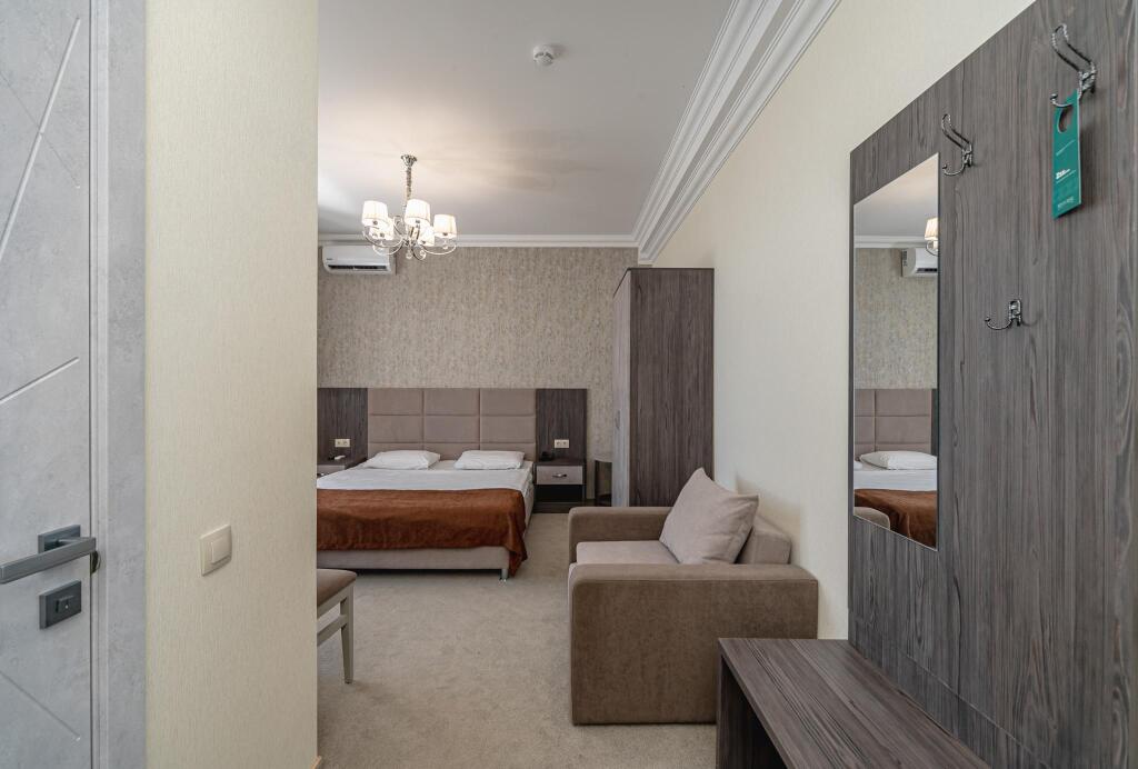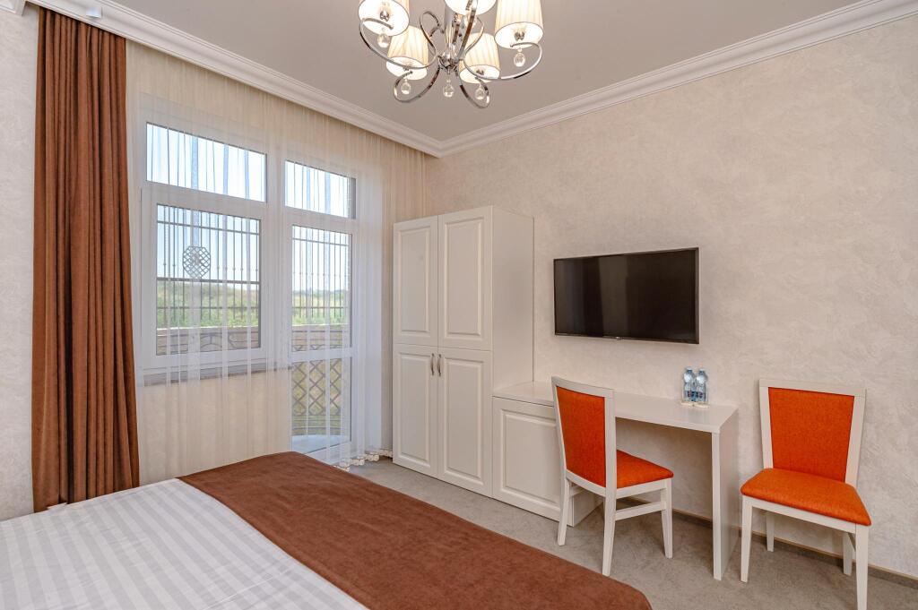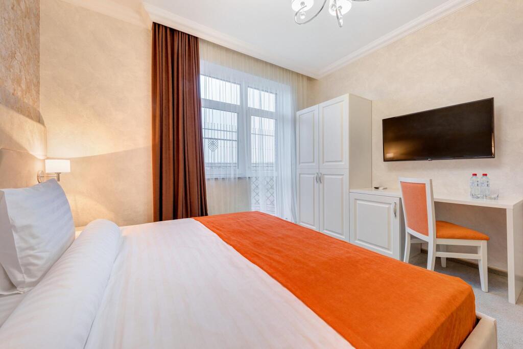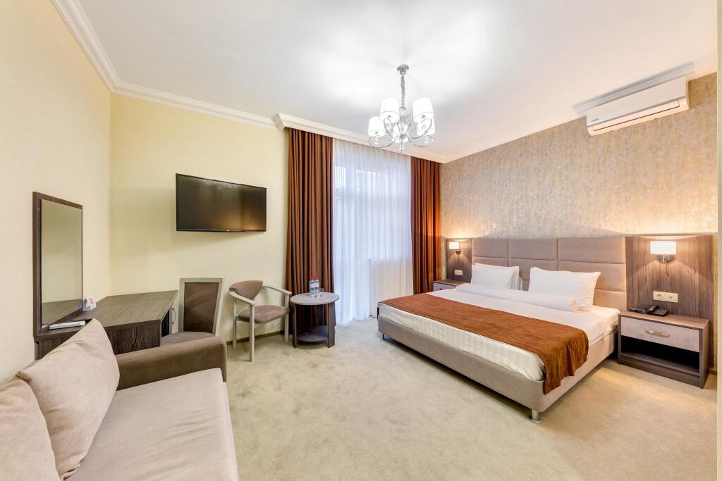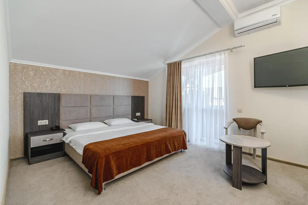 Номер чистый, все необходимое имеется, удивило отсутствие бутилированной воды в номере, при этом воду можно взять на ресепшене и в кафе, не минус просто не привычно.