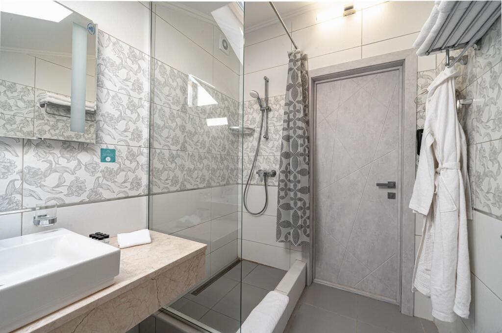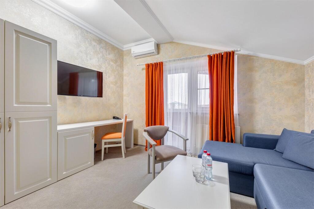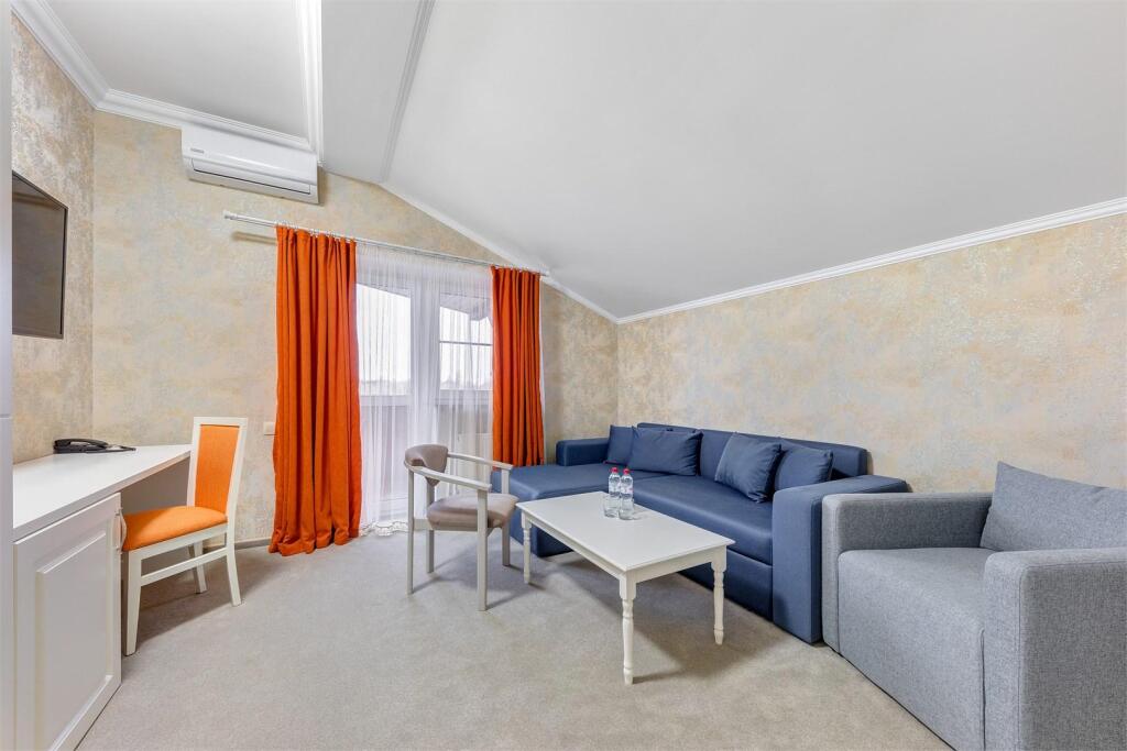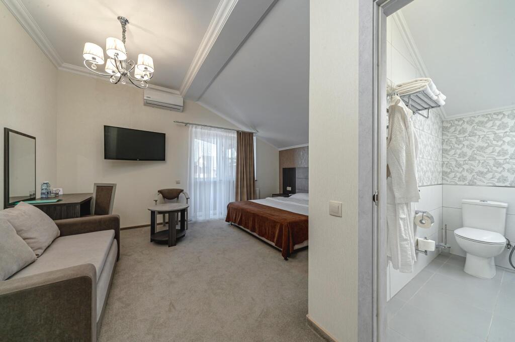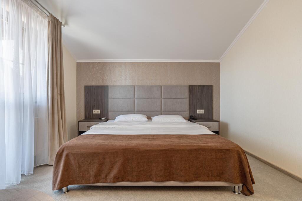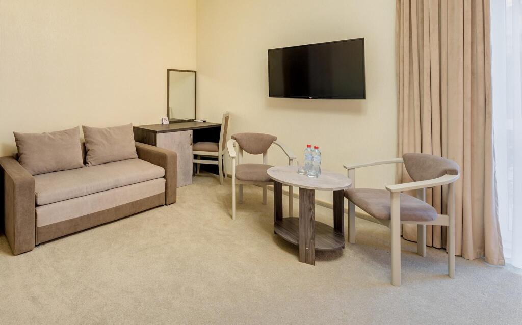 Персонал вежливый, видно что ребята стараются выполнять весь свой функционал подобающе. Питание хорошее, особенно завтраки очень разнообразные. Очень порадовало наличие "собственного" (на базе одного из соседних санаториев) пляжа на берегу моря - за лежаки платить не надо, тень обеспечена. Кстати, море в период 10-13 июня было шикарное и чистое. Расположение тоже угодило, спокойное место вдали от суеты и при этом до пляжа спокойным шагом минут 7-10. Наличие закрытого паркинга тоже внушало спокойствие. При выборе отеля был расчет на наличие бассейна на территории отеля, т.к. по личным причинам части гостей нельзя было купаться в море. Однако, при заезде бассейн был заполнен лишь наполовину, персонал убеждал, что это временные технические проблемы и вскоре всё разрешится. На следующий день начали заполнять бассейн, так что вода в номерах поотключалась. Лишь спустя пару часов уменьшили напор и появилась вода в номерах. Однако, проблему это не решило, весь день бассейн наполнялся, а весь следующий день стоял грязный и весь зелёный - непригодный для купания. Лишь в день отъезда бассейн начали чистить и фильтровать. Вывод - в бассейне так и не удалось поплавать, all-inclusive выдался, увы, неполноценным. Даже стройка на территории не портила впечатление об отеле, как этот факт, т.к. стройка по всей видимости на время сезона заморожена и кроме внешнего вида ничем не смущает.