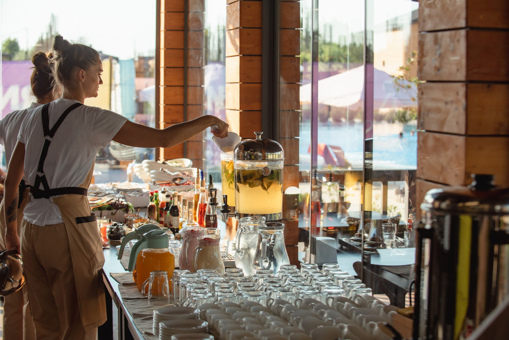 Музыка, вкусная еда . Бассейн. Отсутствие горячей воды в душе.