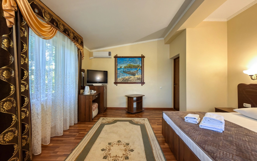 В номере гостей ждут телевизор. Перечисленные услуги есть не во всех номерах.