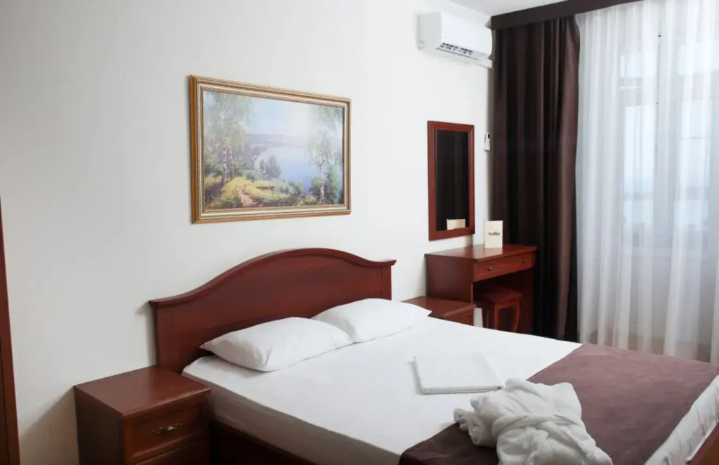 Санаторий «София» расположен в Анапе, на первой линии Пионерского проспекта, в 50 м от моря.