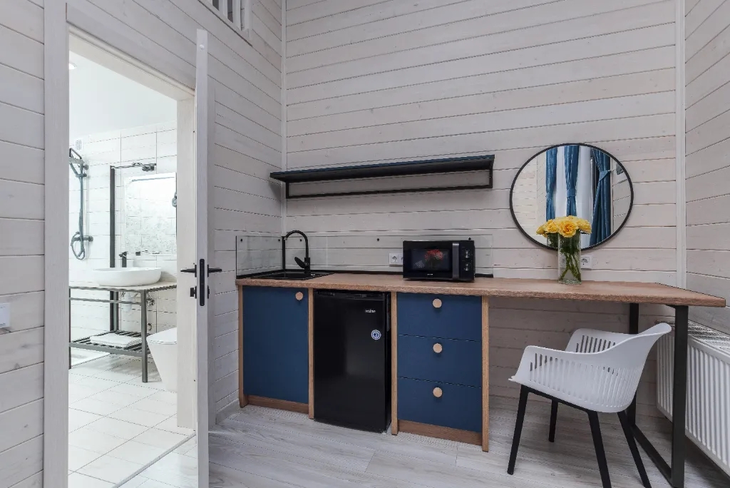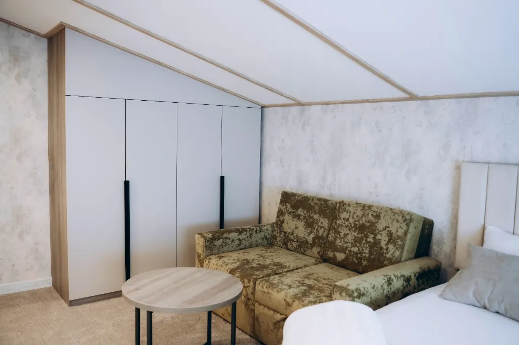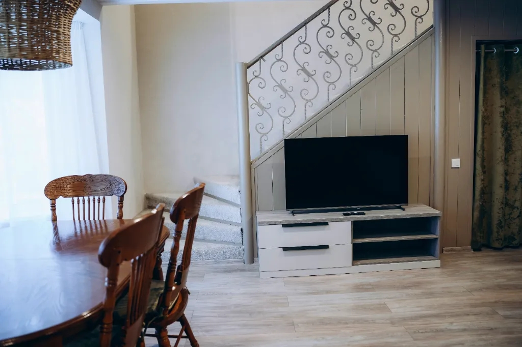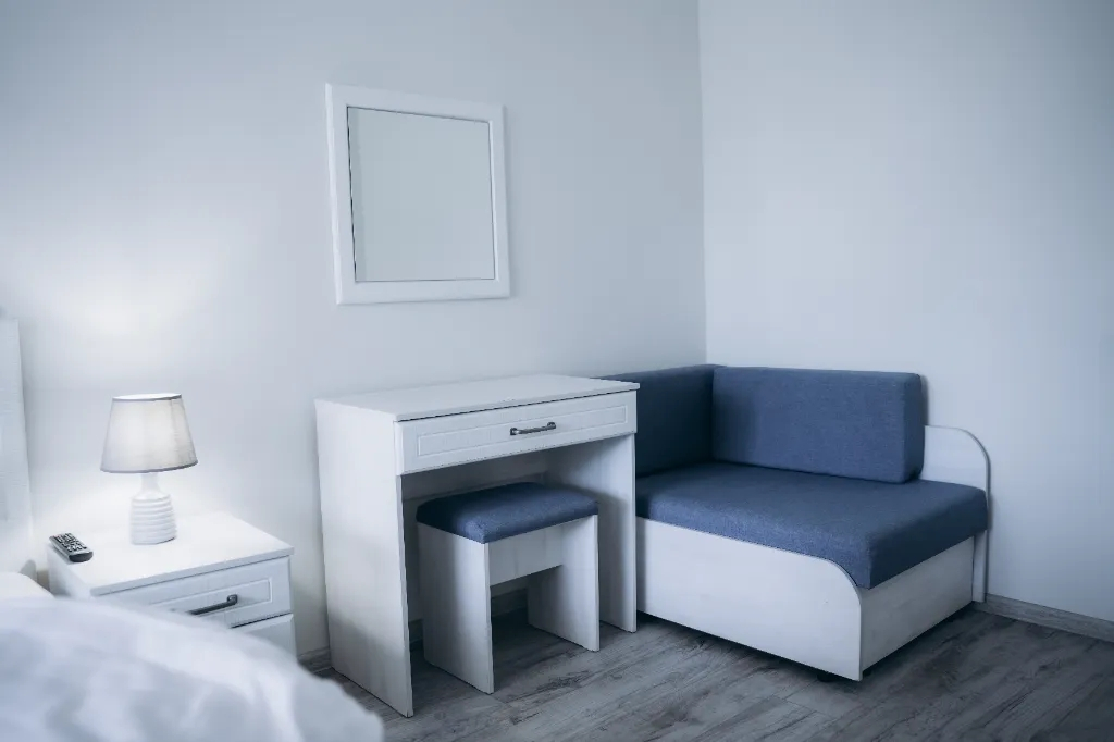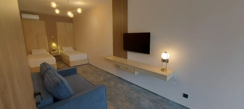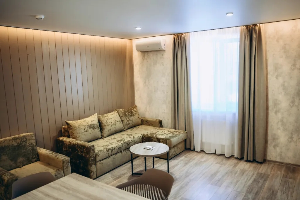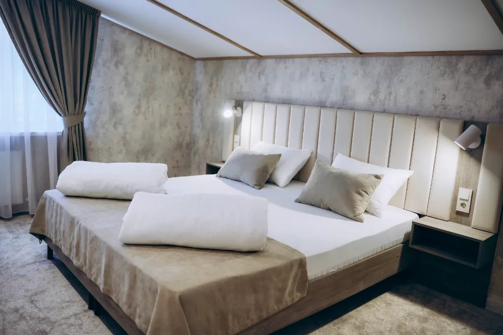 Номер обставлен и оснащён, чтобы отдохнуть после долгого и насыщенного дня. Имеются телевизор и халат. Перечисленные услуги есть не во всех номерах.
