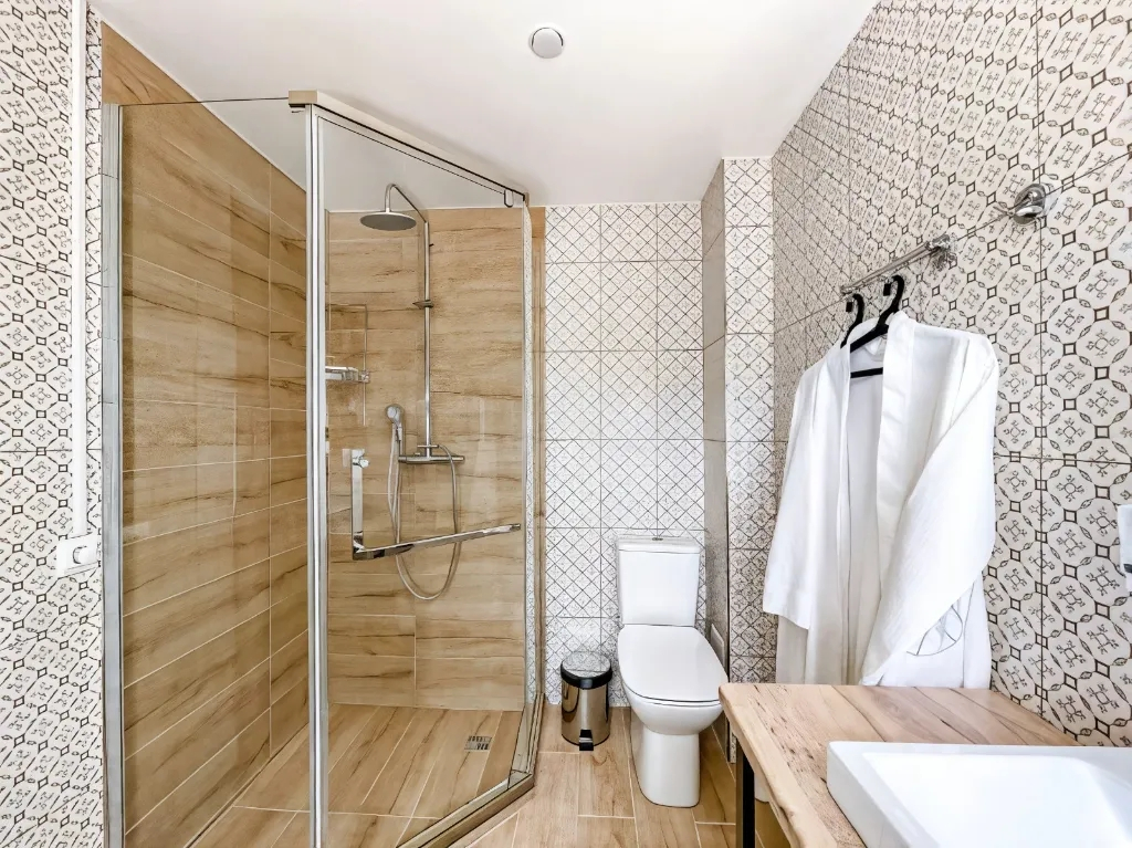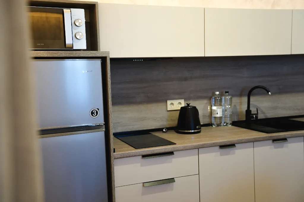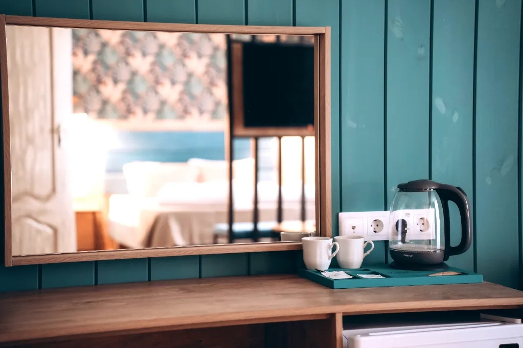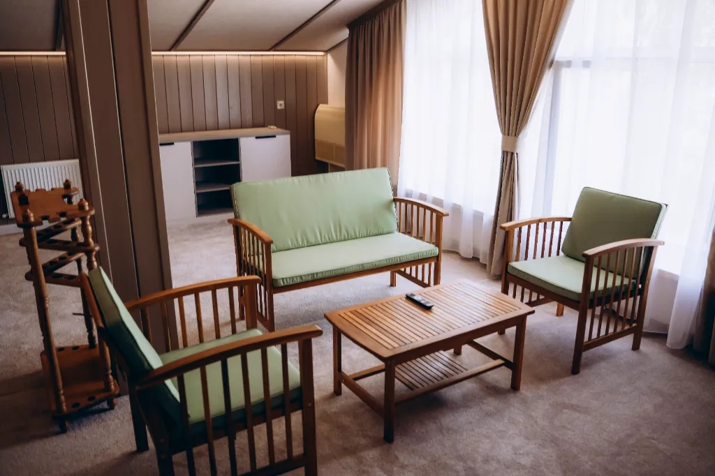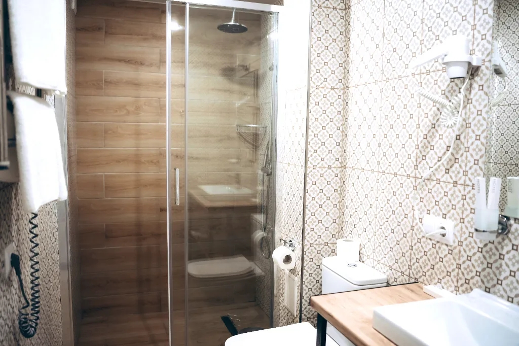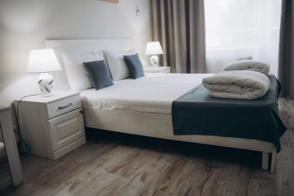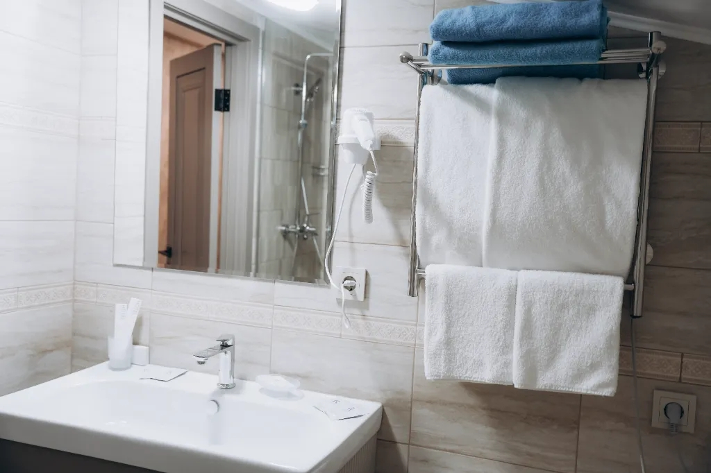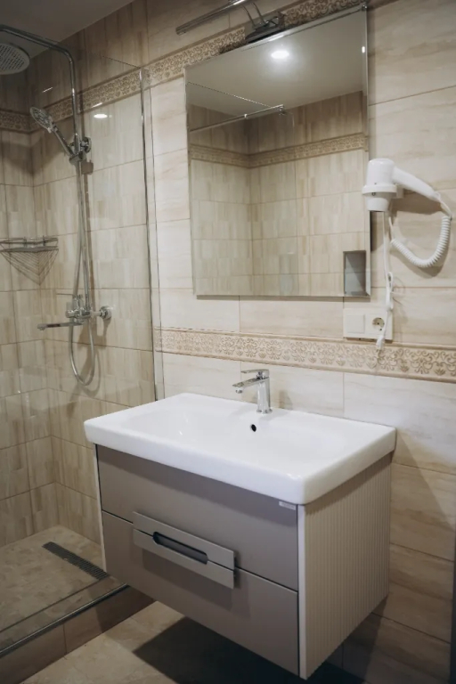 Номер обставлен и оснащён, чтобы отдохнуть после долгого и насыщенного дня. Имеются телевизор и халат. Перечисленные услуги есть не во всех номерах.