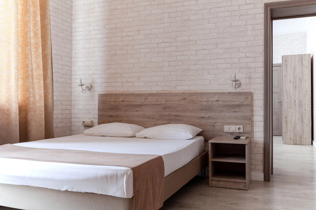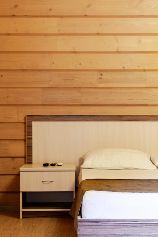 Сначала заселились в эко-дом - постельное бельё было "разношерстным" (Пододеяльник от одного комплекта, простынь от другого ). Далее проживали в номере (как раз с муравьями), вот здесь уже было белоснежное бельё и светлые стены.