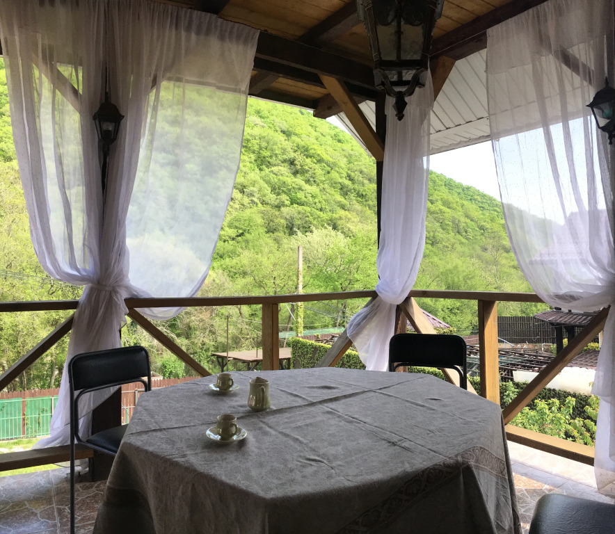 Частный дом «Ель» расположен в горном ущелье курорта Бетты. В непосредственной близости от моря и леса. Дорога к морю ровная, без резких подъёмов и спусков, через мостики над речкой, расстояние — 1700 км.