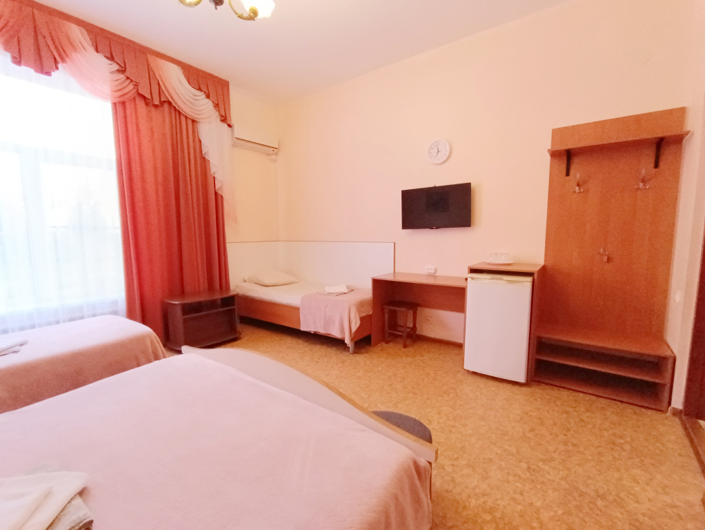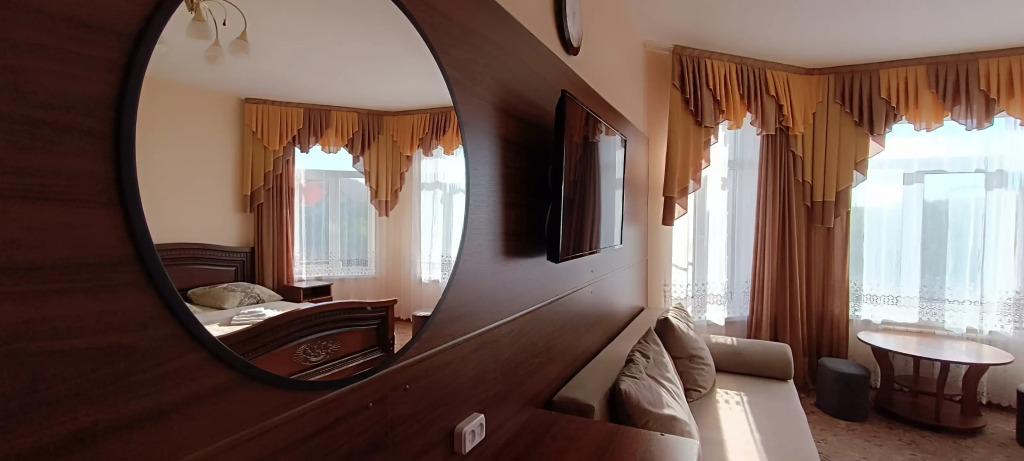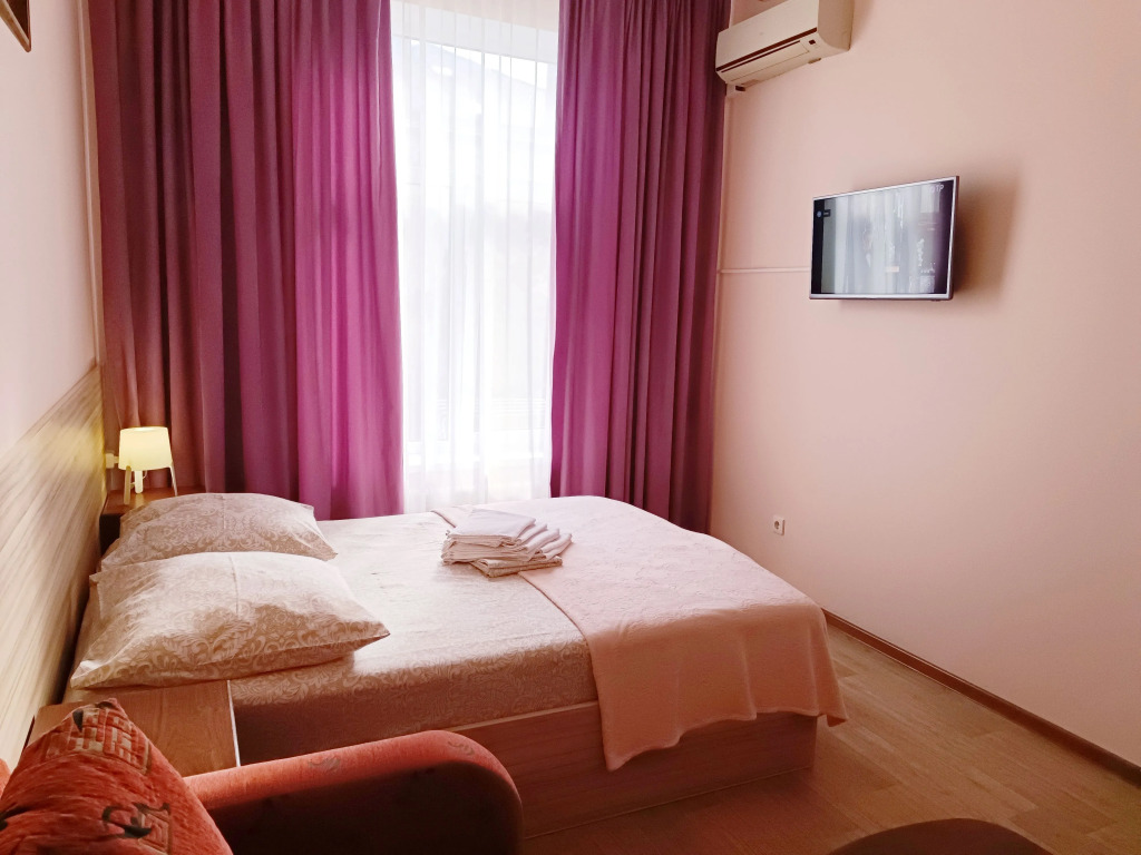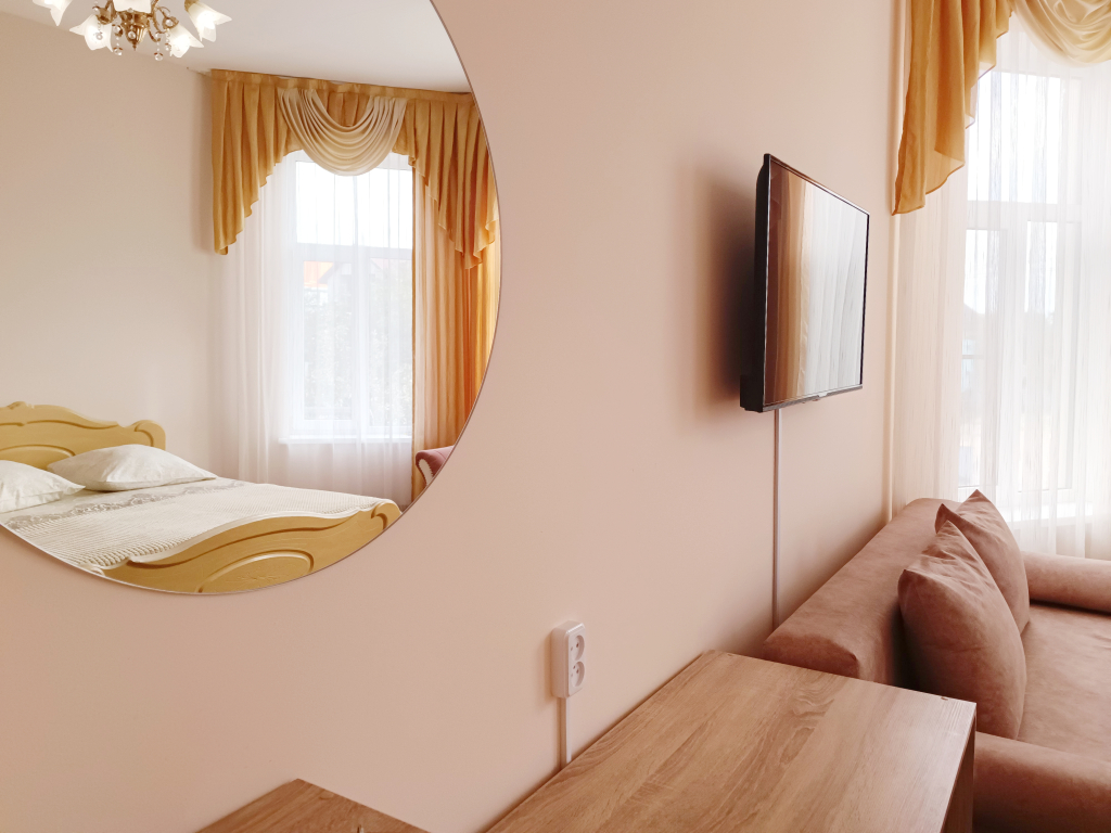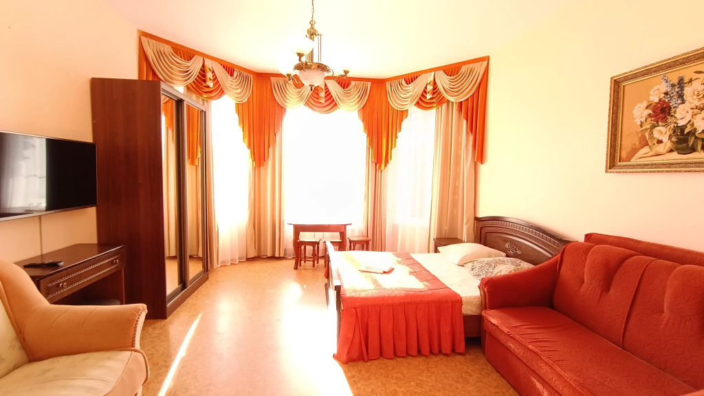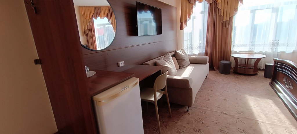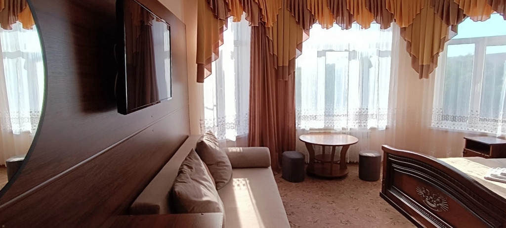 В номере вы найдёте телевизор. Оснащение зависит от выбранной категории номера.