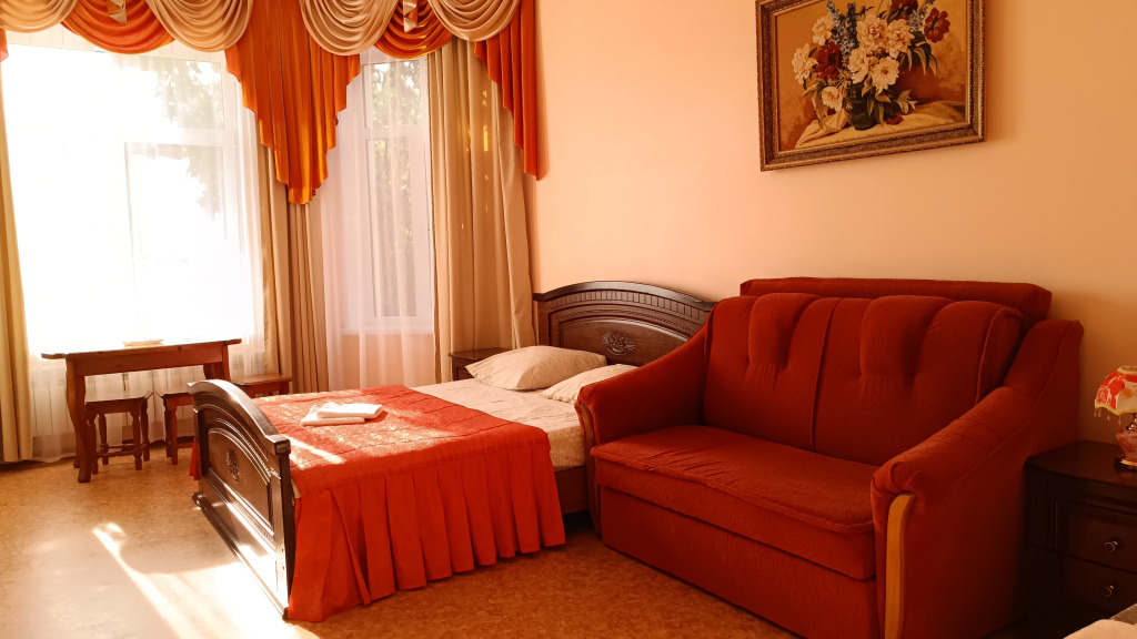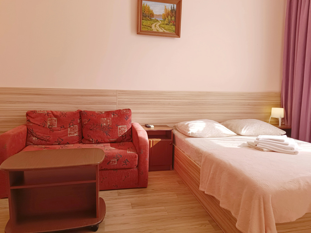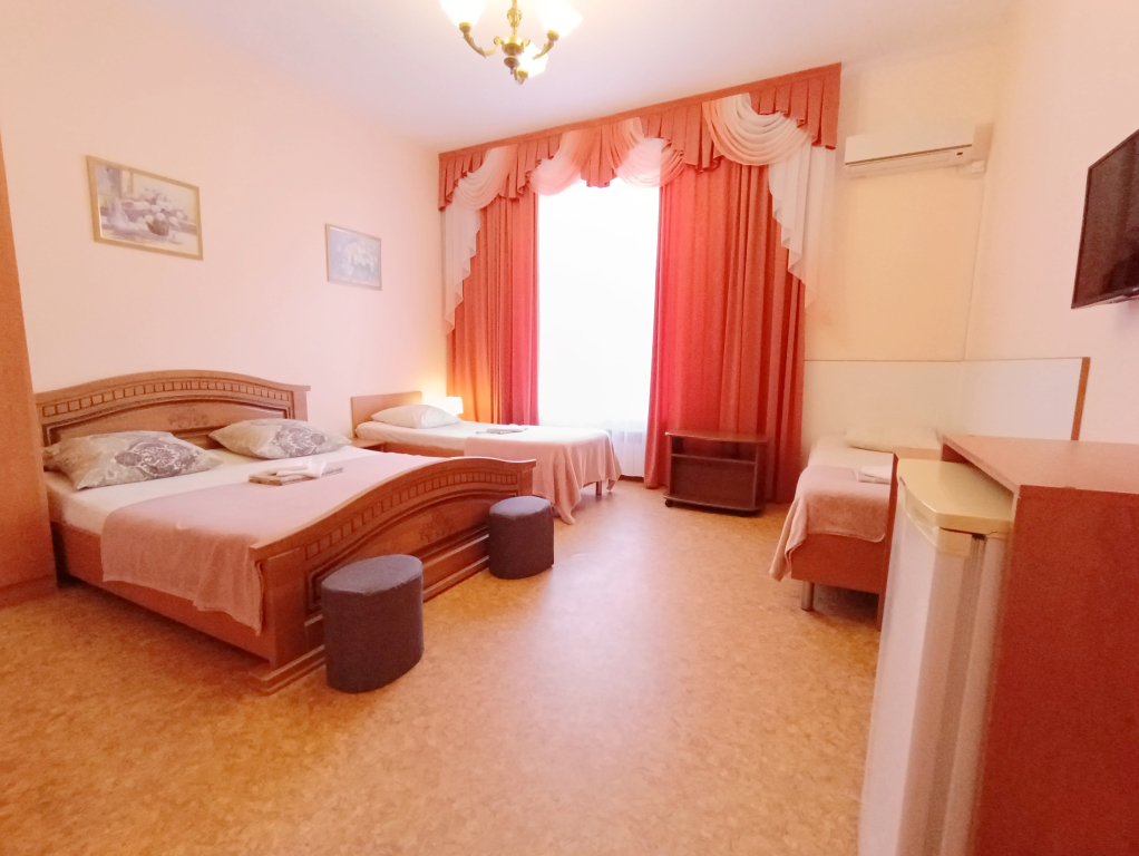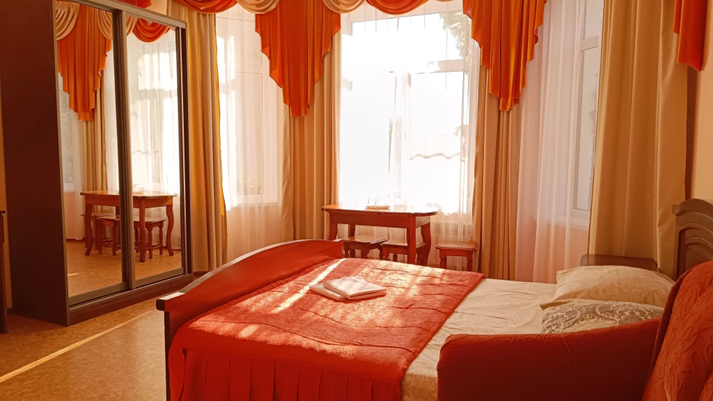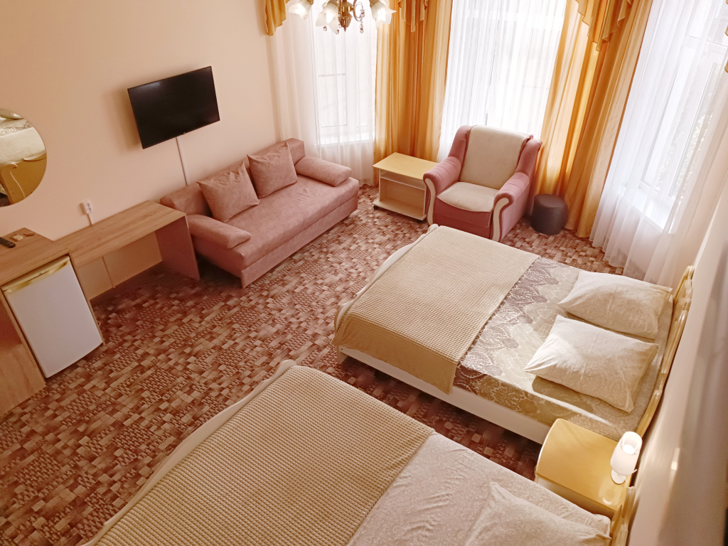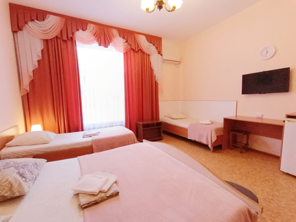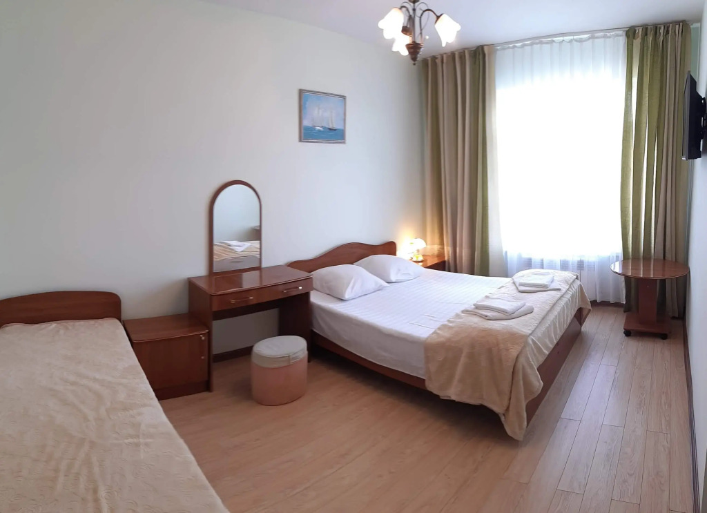 В номере вы найдёте телевизор. Оснащение зависит от выбранной категории номера.