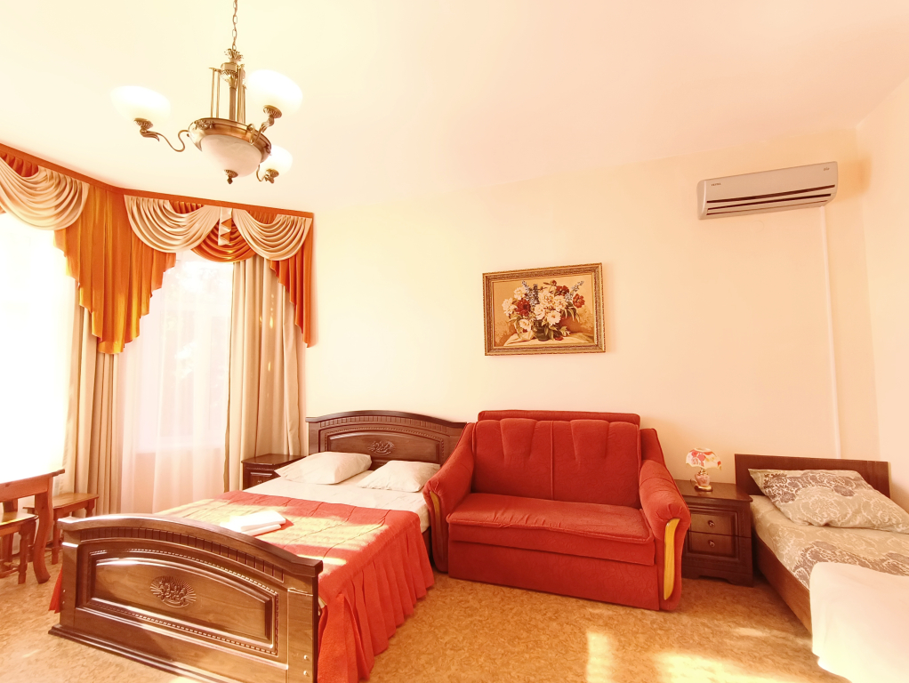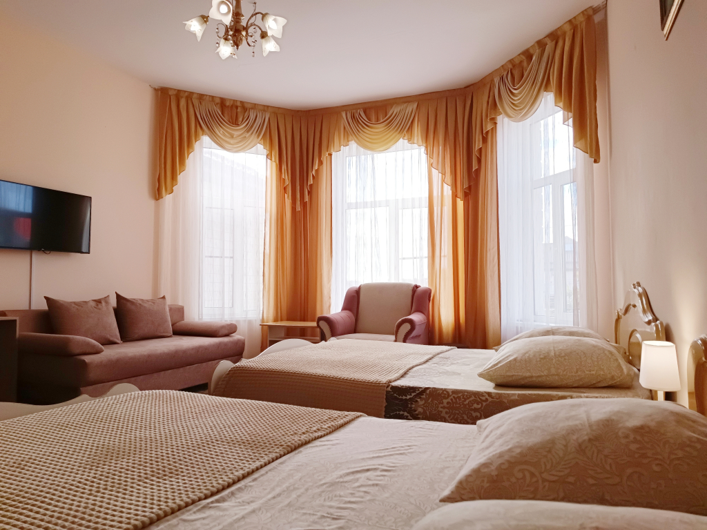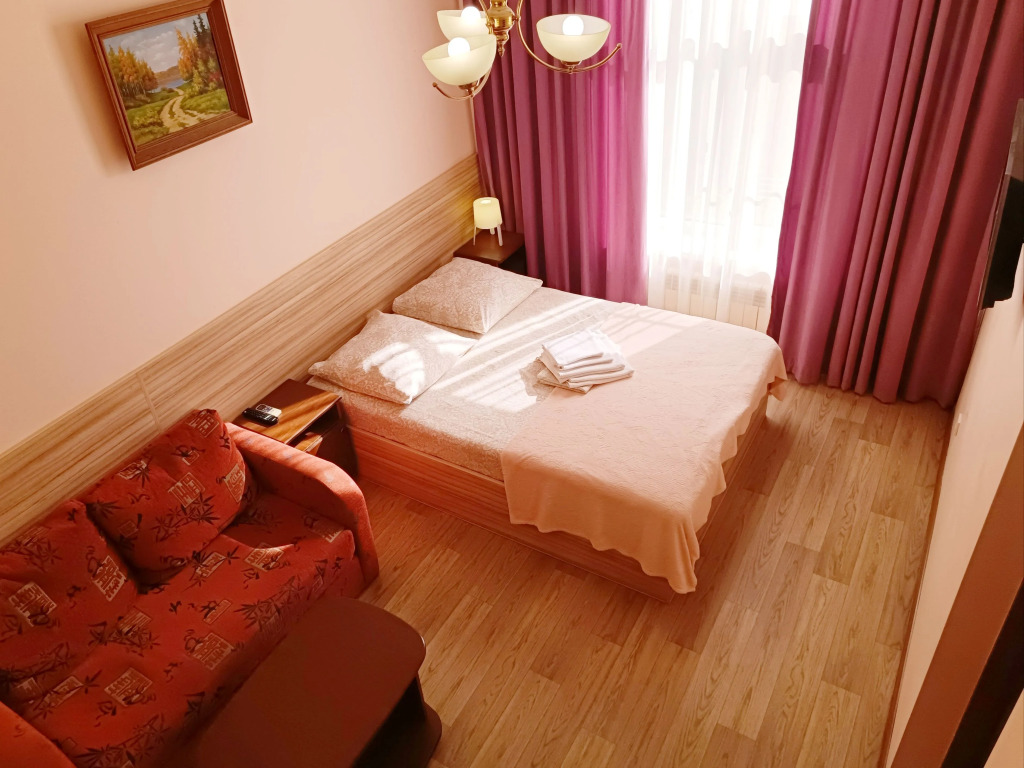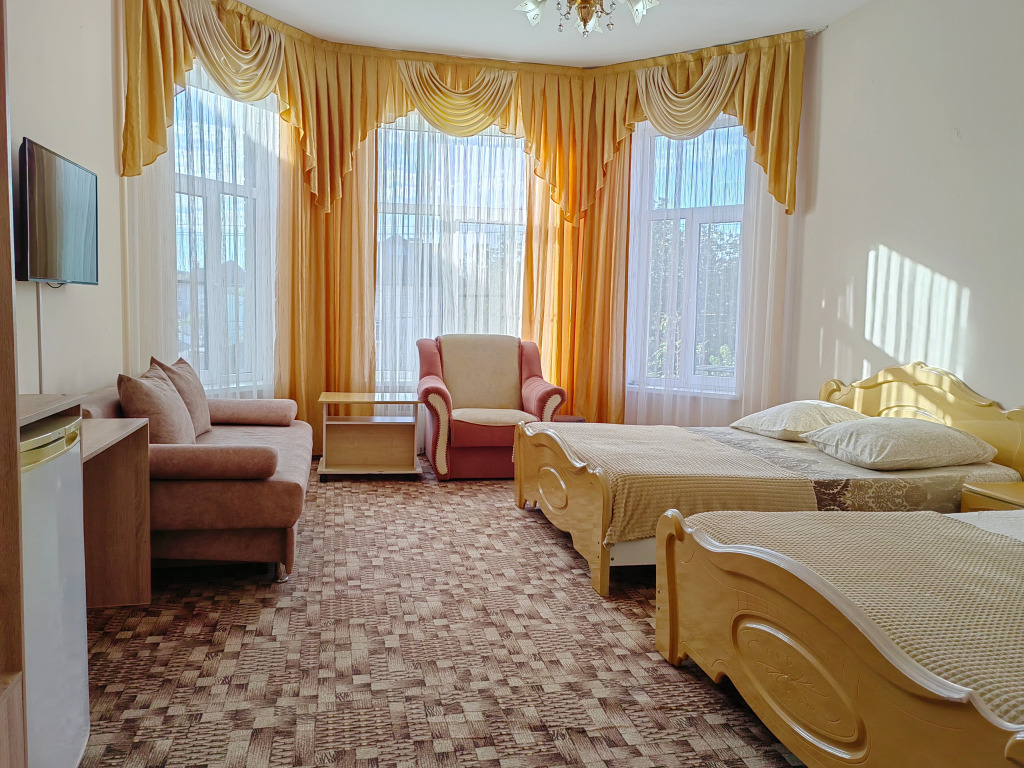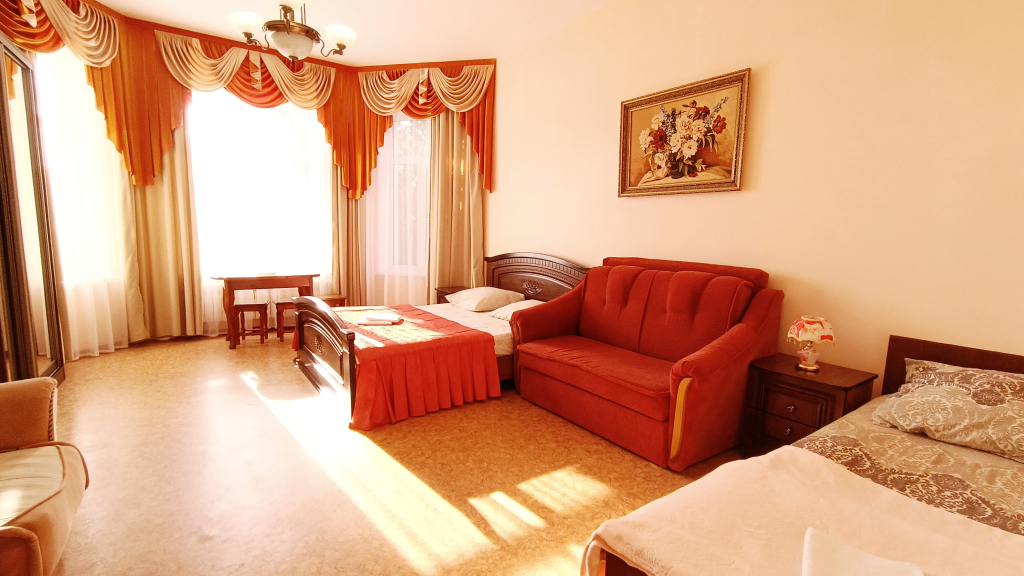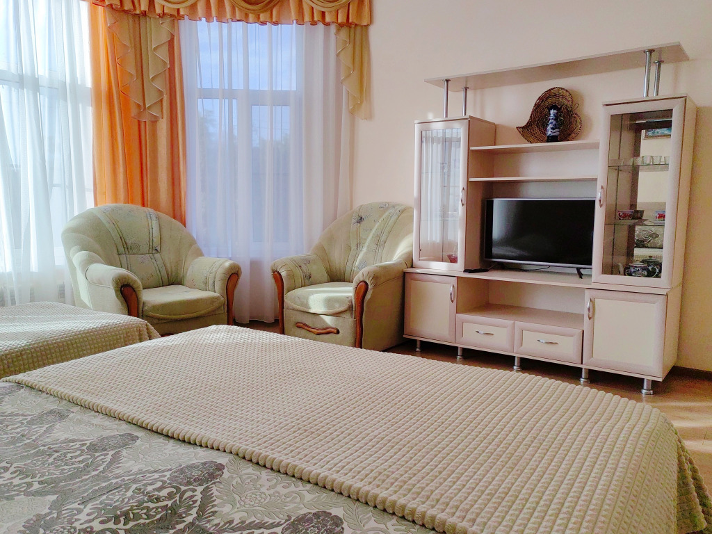 В номере вы найдёте телевизор. Оснащение зависит от выбранной категории номера.