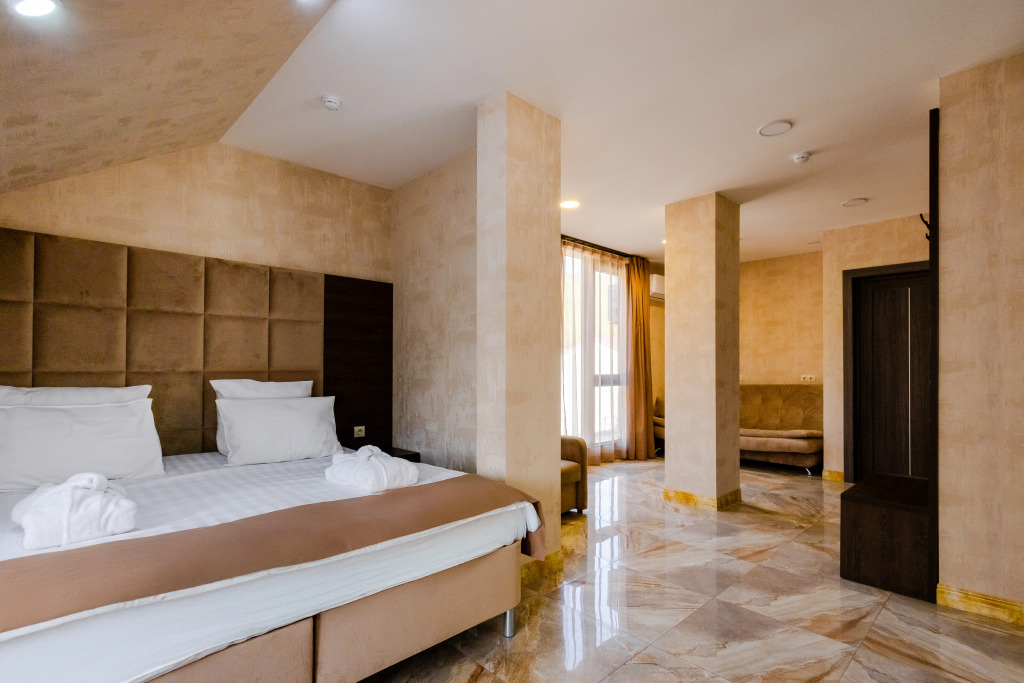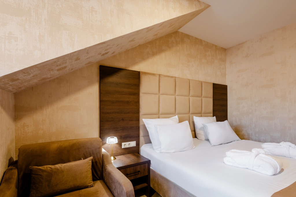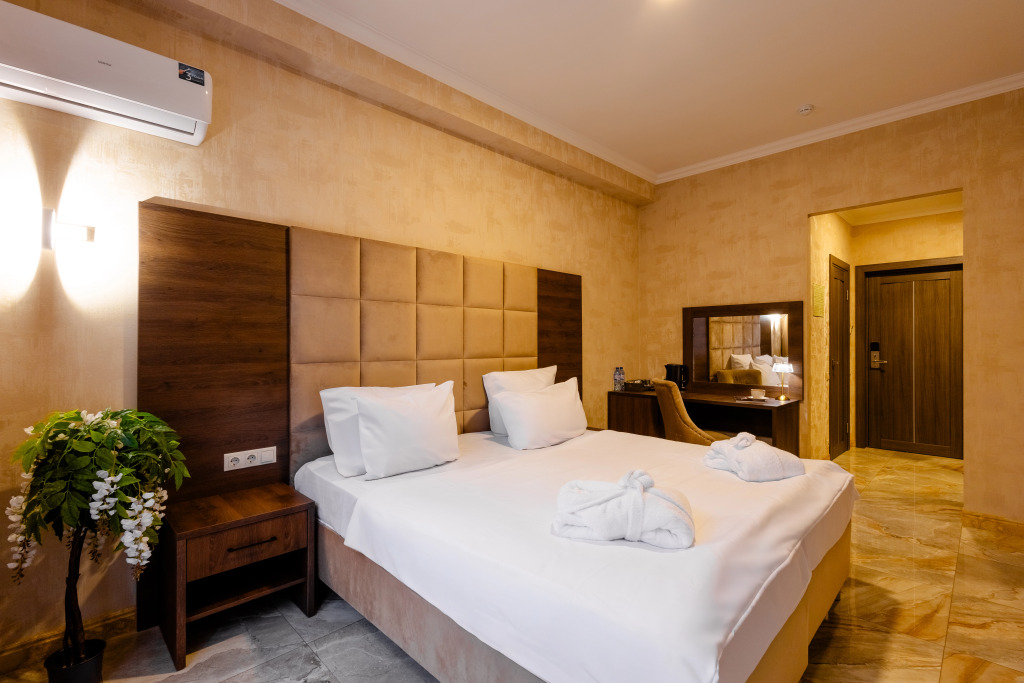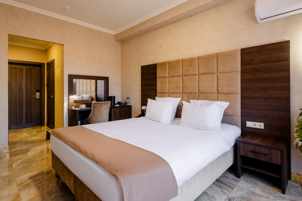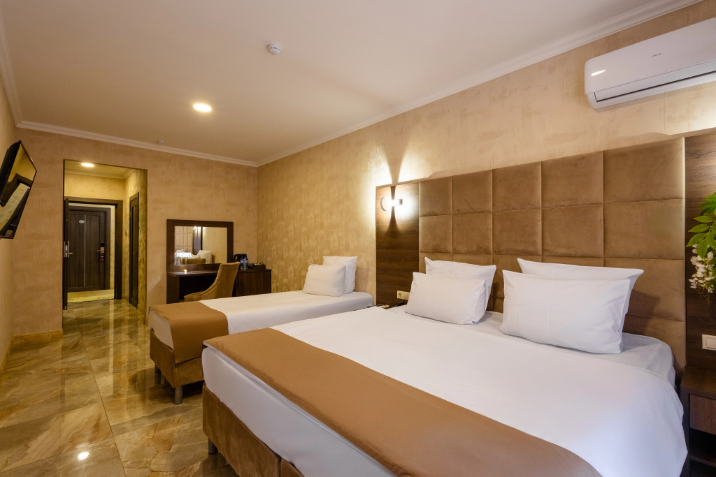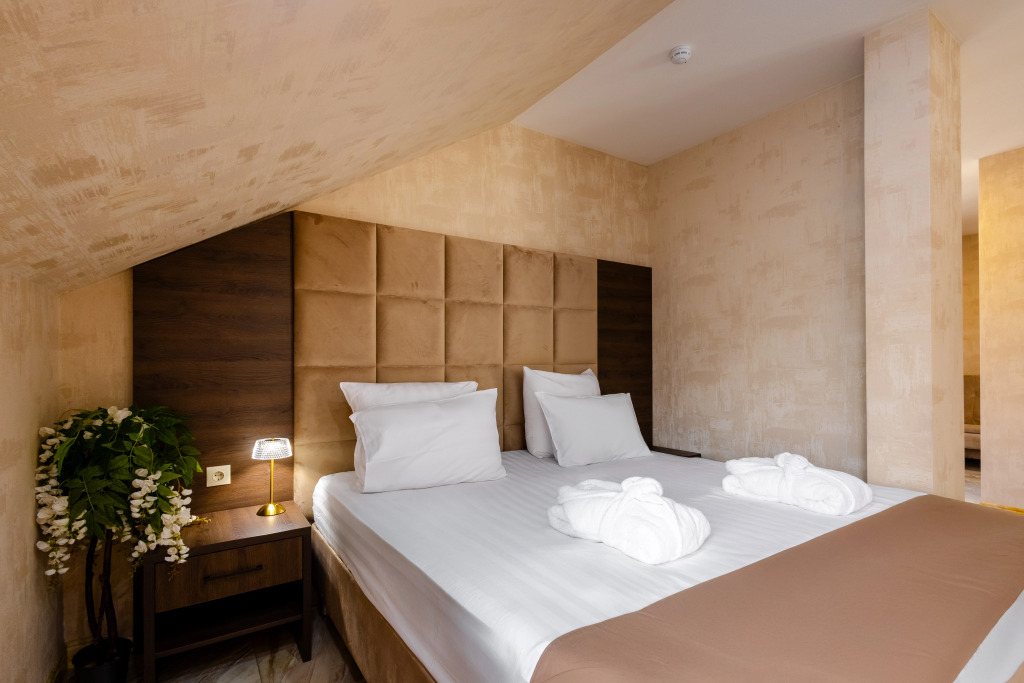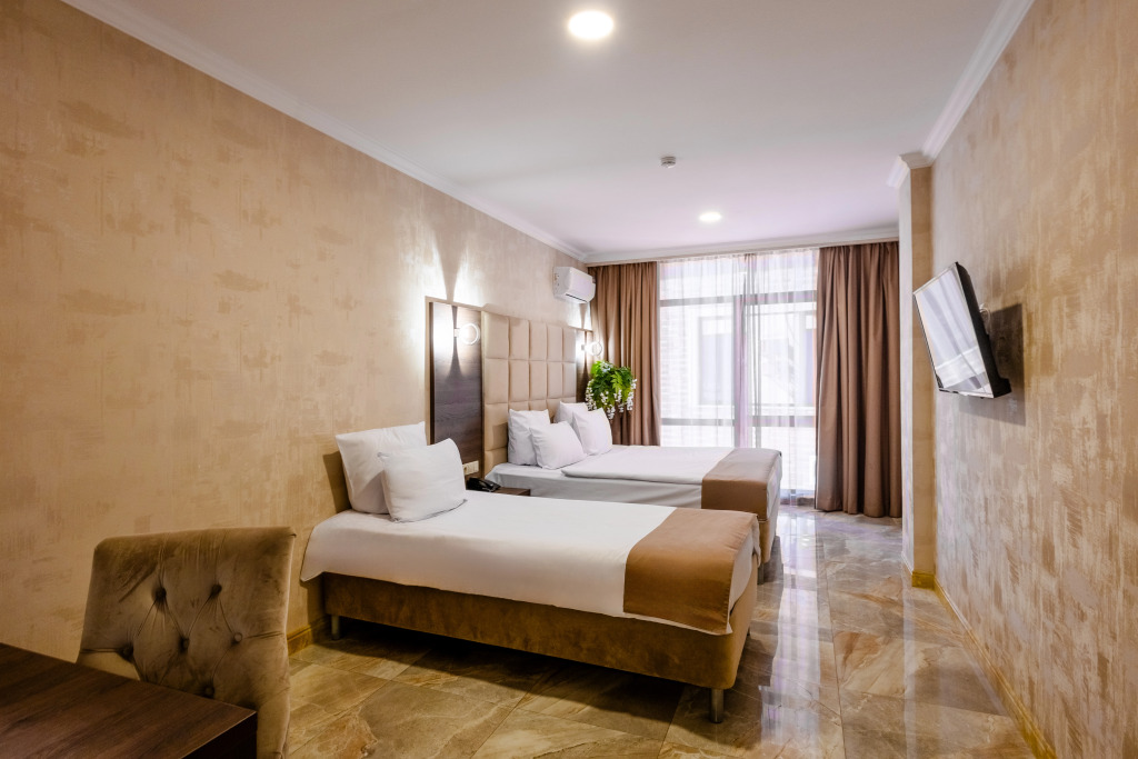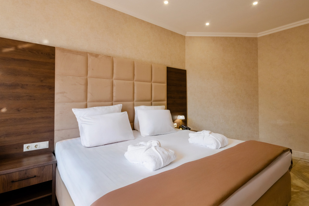 В отеле все номера кроме номеров «Люкс» не имеют полноценной двуспальной кровати. Она делается путём соединения двух односпальных кроватей с топпером.