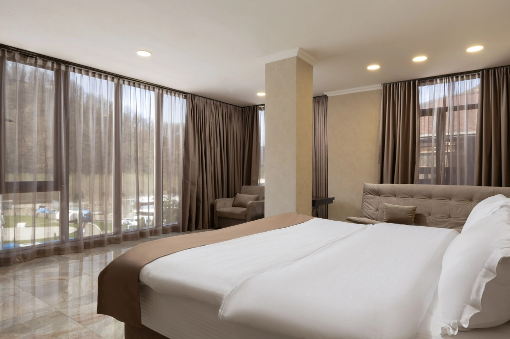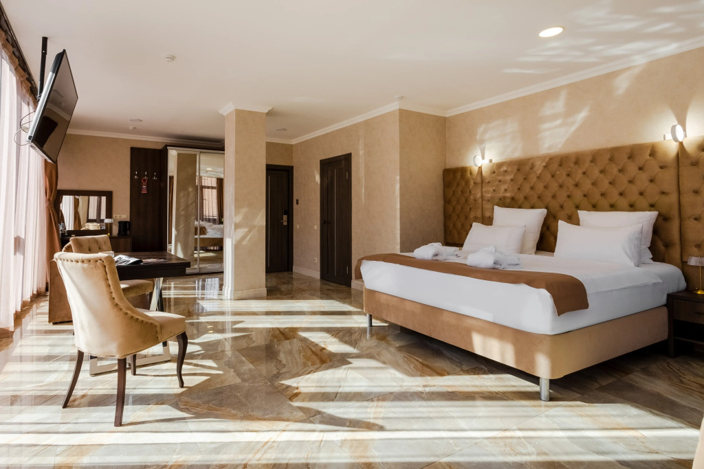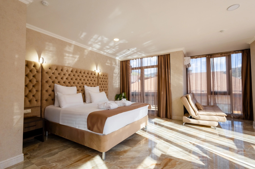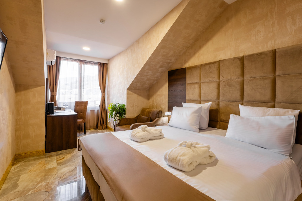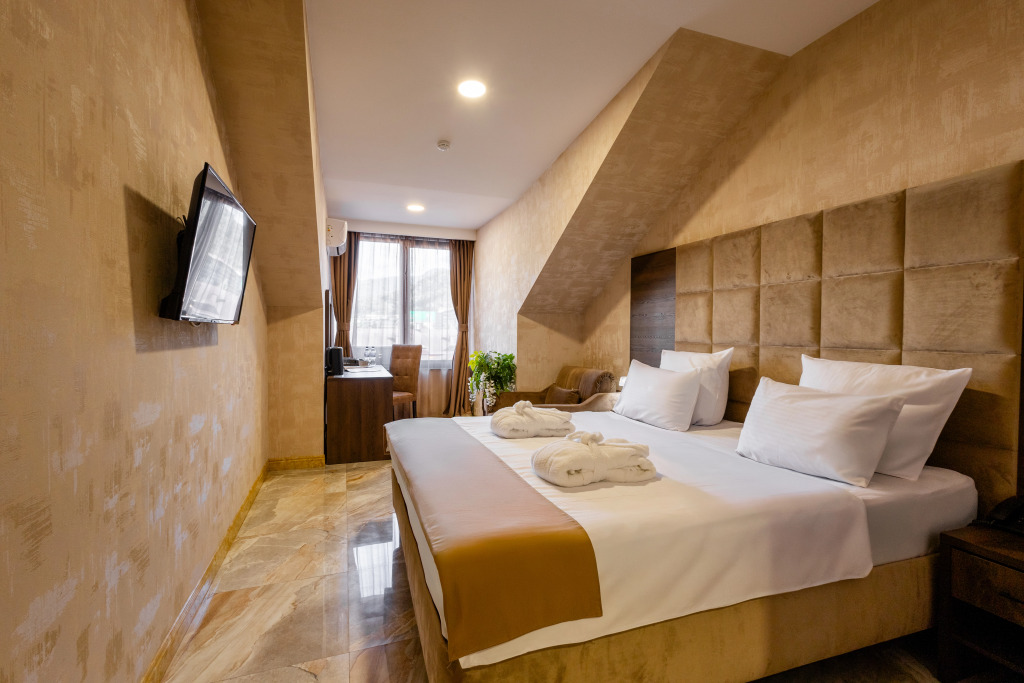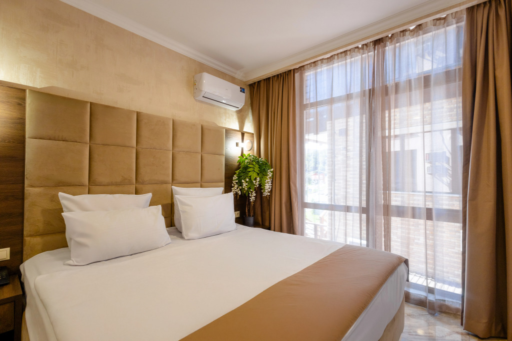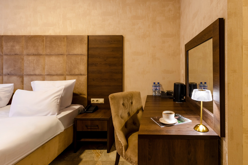В отеле все номера кроме номеров «Люкс» не имеют полноценной двуспальной кровати. Она делается путём соединения двух односпальных кроватей с топпером.