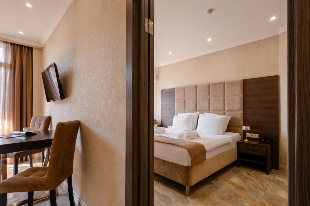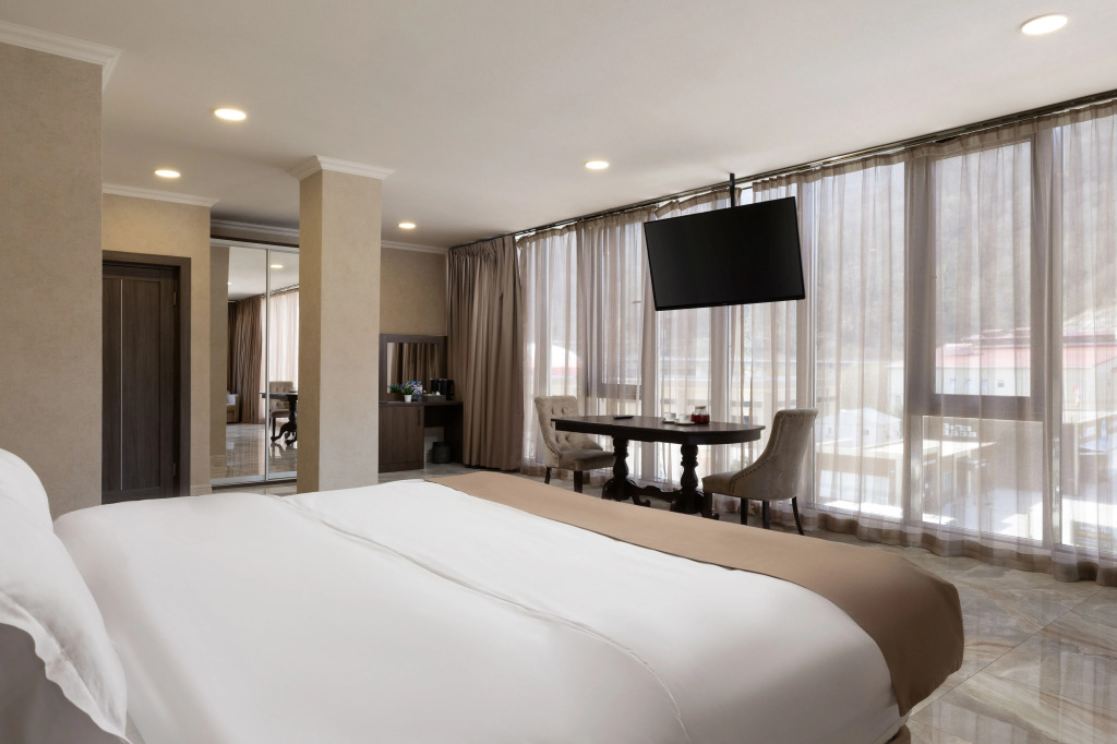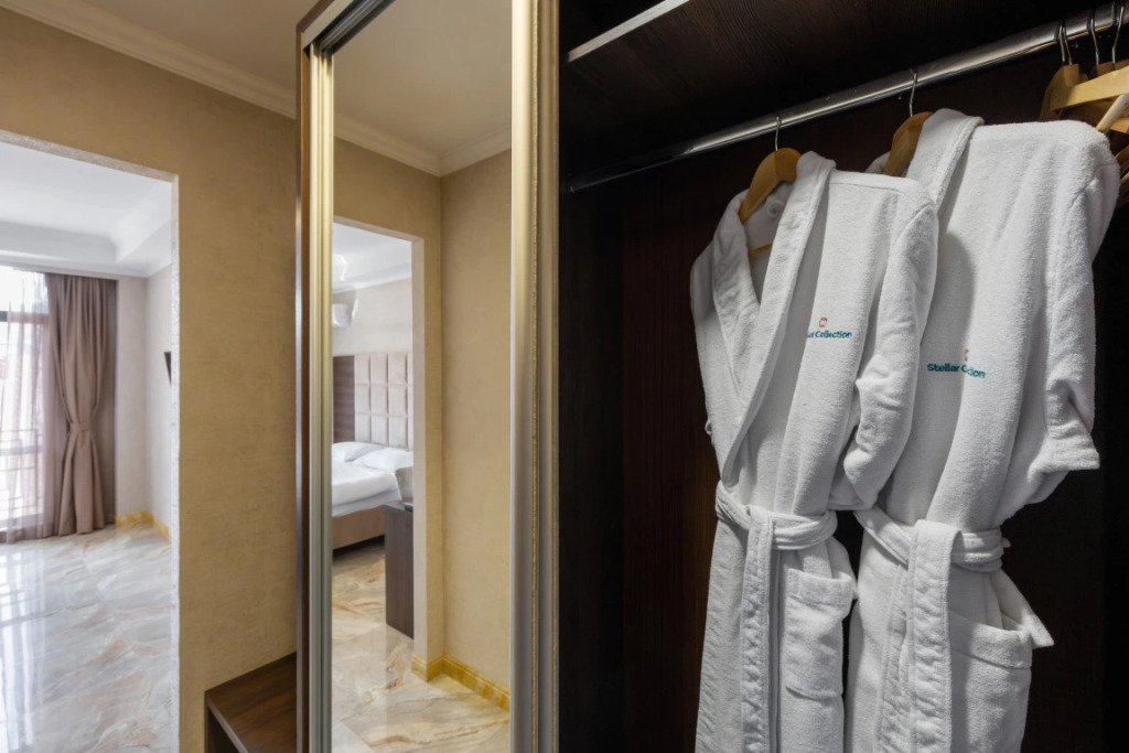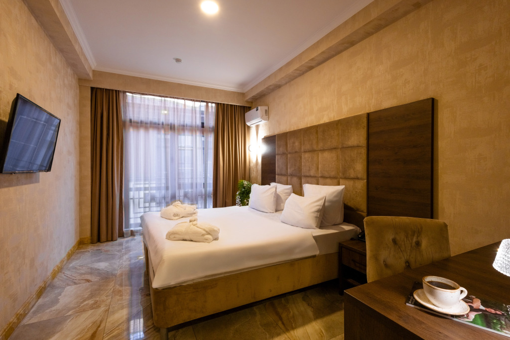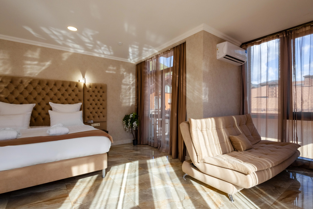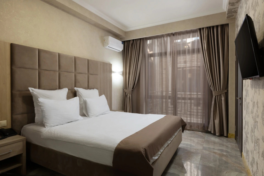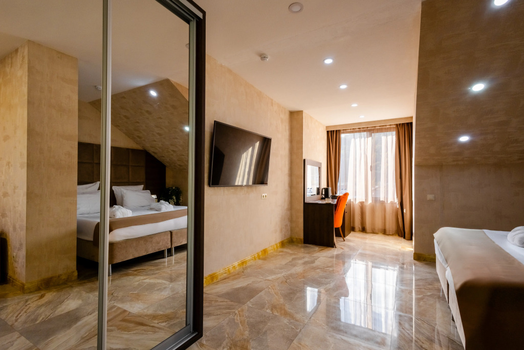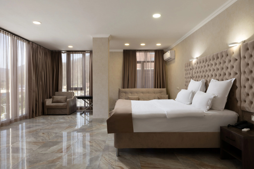 В отеле все номера кроме номеров «Люкс» не имеют полноценной двуспальной кровати. Она делается путём соединения двух односпальных кроватей с топпером.