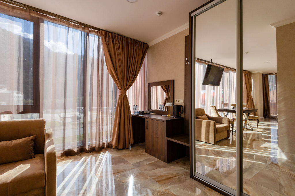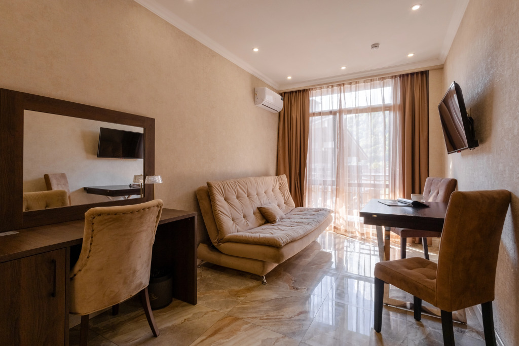 Жилой фонд отеля включает в себя 85 номеров. Все номера оснащены санузлом с душем, оборудованы сплит-системой, везде есть телевизор, фен, мини-холодильник, электрочайник.