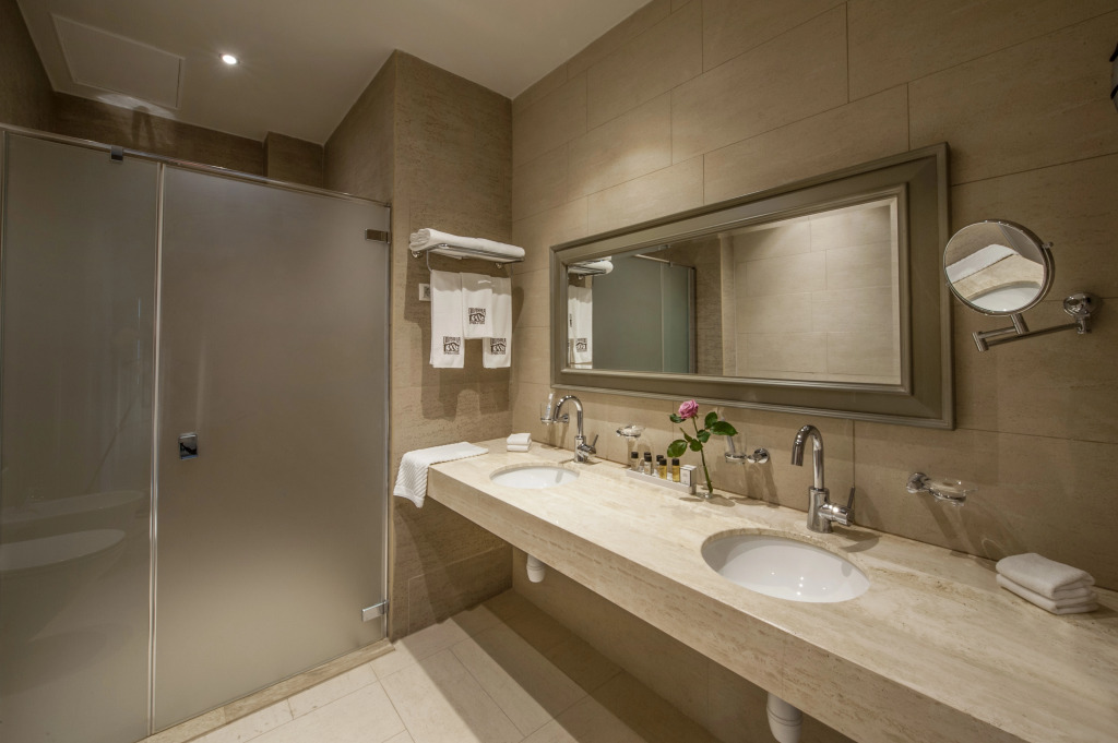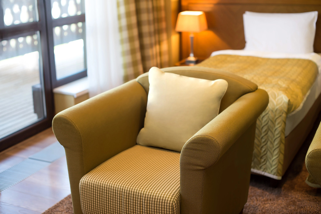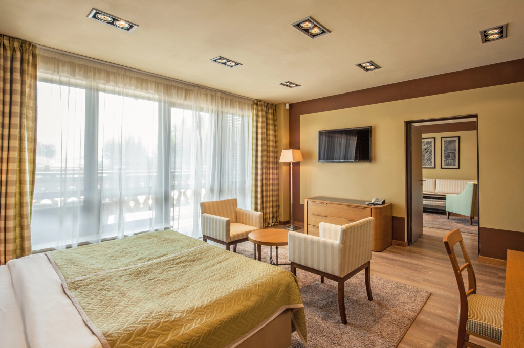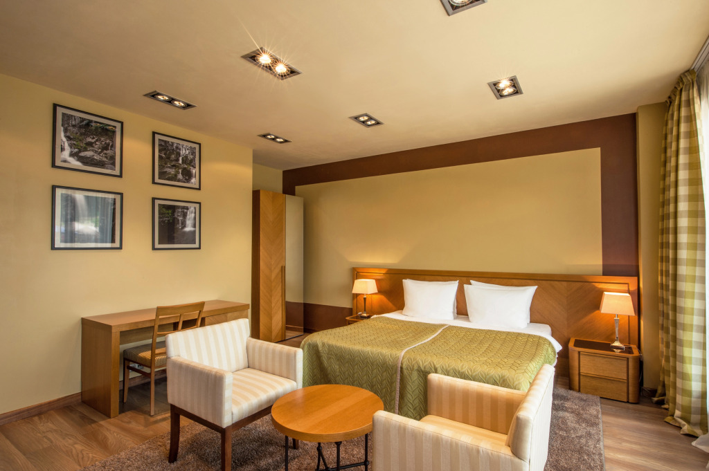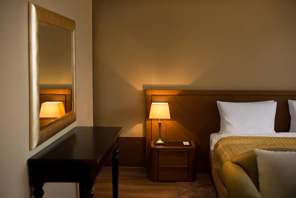 Во всех номерах категорий Стандарт, Студия, Полулюкс расположены две полутора-спальные кровати с матрасами-конструкторами, которые при необходимости объединяются в размер Queen size (двуспальную кровать). Каждый номер оснащен выходом на террасу или балкон.