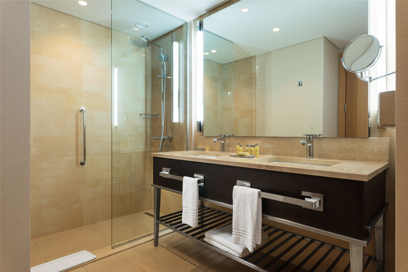 428 номеров представлены категориями «Делюкс», «Люкс», «Семейные апартаменты», «Пентхаус» и «Президентский люкс», в том числе номерами для гостей с ограниченными возможностями. Эклектика интерьеров включает элементы минимализма и стиля баухаус. У каждого номера имеется балкон с видом на Кавказские горы.