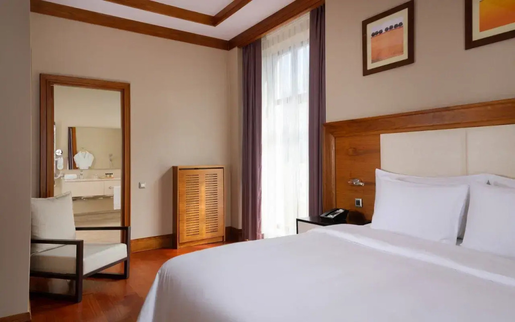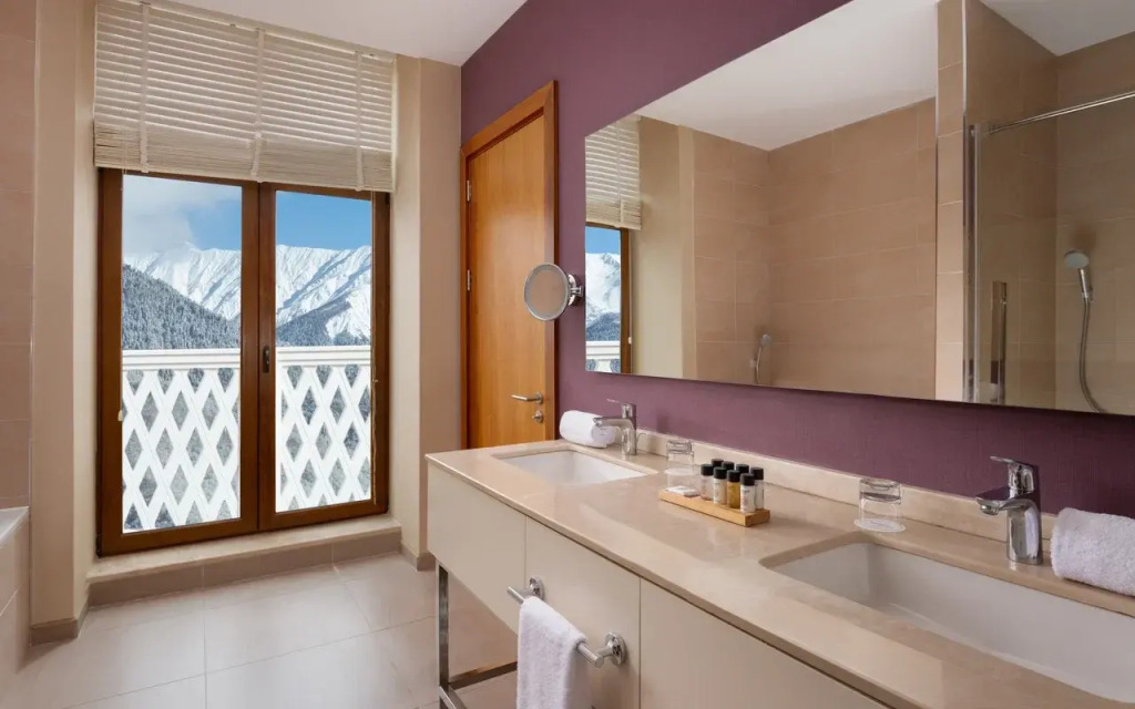 Отличное расположение, большой метраж номера, большие полотенца и удобный халат) очень вкусные и качественные завтраки! Хватало до вечера, сытное. Кто планирует ехать в ближайшее время имейте ввиду, что вокруг и в самом отеле идет стройка. Гремит весь день, окна не открыть. Запах, пыль, рабочие. У меня окна выходили прямо на строящийся дом, шторы все время были задернуты, света а тем более горного воздуха не ждите.