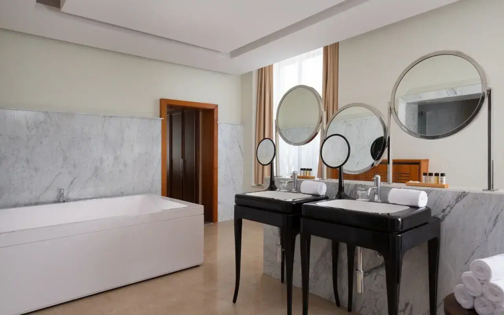 Душевая протекает и для 5 звезд могли бы сделать полы с подогревом, ледяной кафель, на тонкое полотенце для ног холодно. Каждый раз приходилось подтыкать лужи полотенцами, вид так себе.