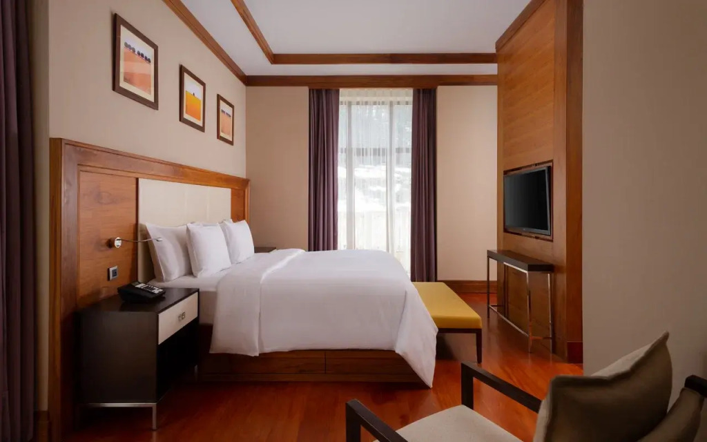 Прекрасный отдых в горах стал просто потрясающим с ежедневным возвращением вечером в комфортный и гостеприимный отель «Мовенпик». Великолепные завтраки (с шампанским), шоколадный час с 17 часов (фрукты, чай, шоколадный фонтан). Дружелюбный, спокойный персонал решал все возникшие вопросы (единичные, так как в отеле всё очень продумано). Очень комфортная кровать (сатиновая постель), подушки на выбор. Для желающих - парная, хамам, небольшой бассейн. Ежедневный трансфер в Имеретинскую бухту на свой пляж курорта «Красная поляна». Отель находится на высоте 960 м (фуникулёр до «Поляны 960» бесплатный для проживающих в отеле), соответственно тихо, спокойно, без вечернего ора и дискотек (если хотите шума и тусы, то вам лучше в Красную поляну, хотя и там можно найти локацию в спокойном месте). Чистейший горный воздух. -