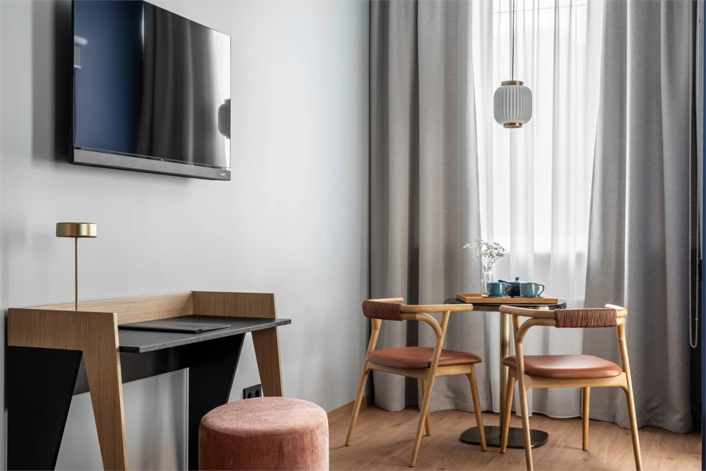 В номере гостей ждут телевизор и халат. Оснащение зависит от выбранной категории номера.