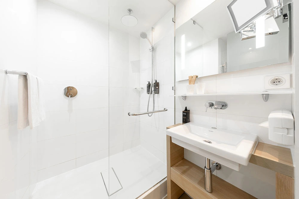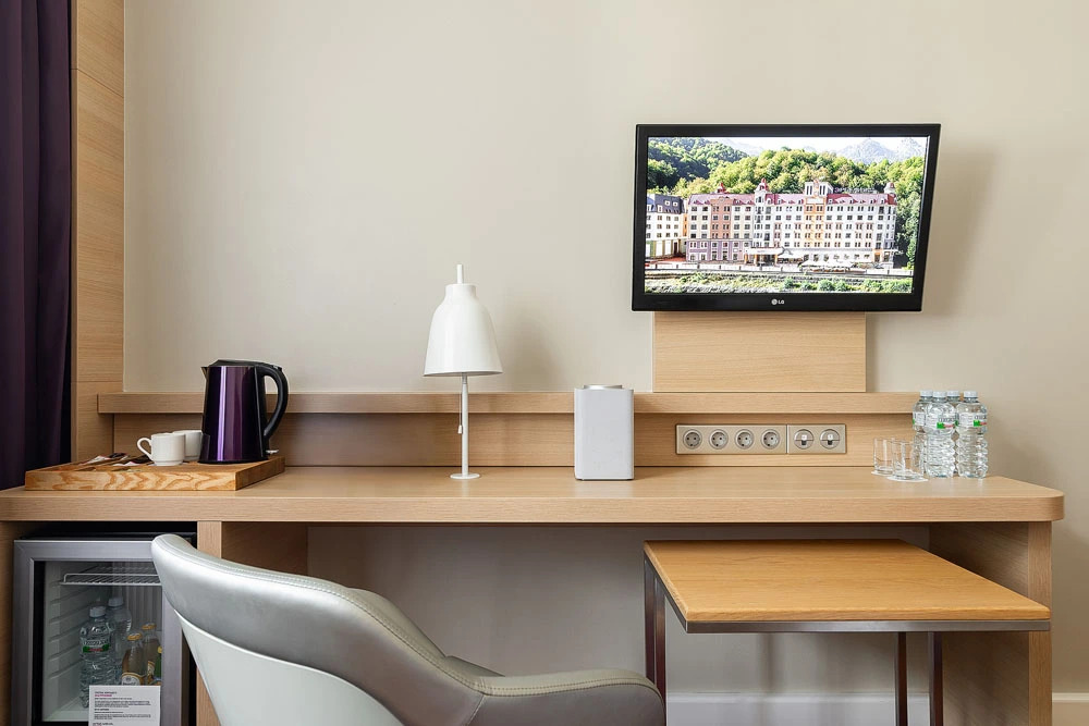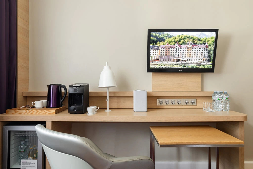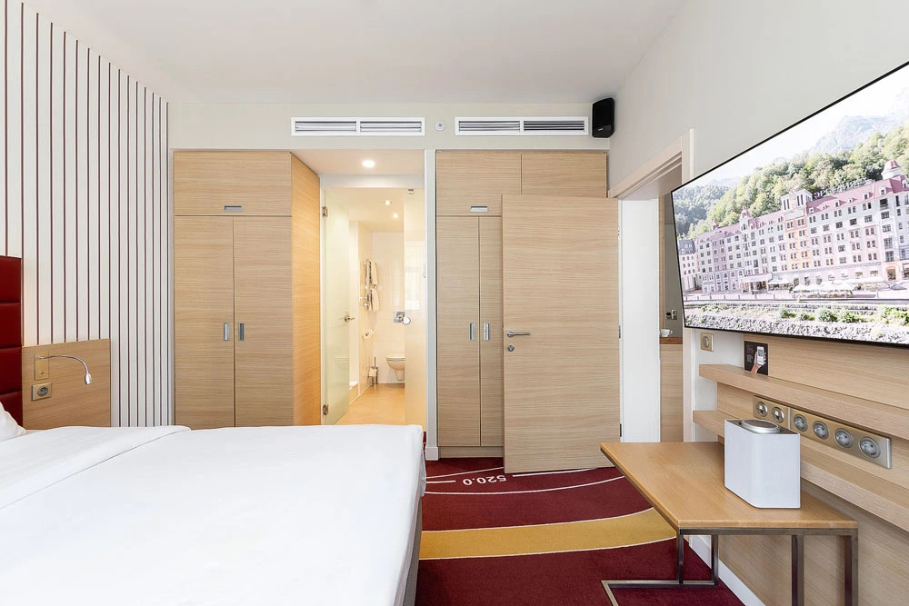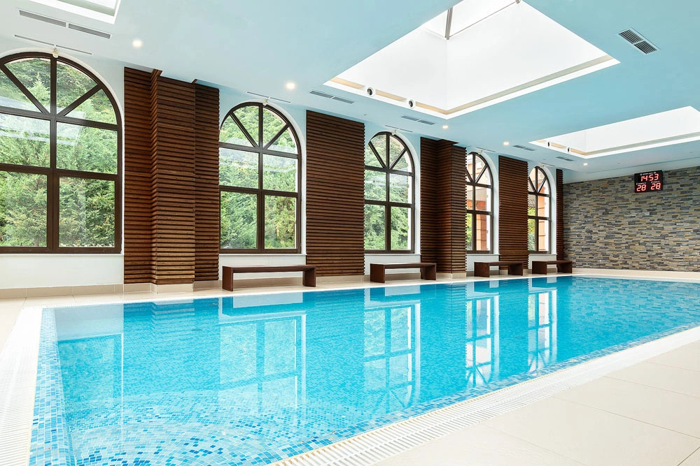 В распоряжении гостей есть круглогодичный крытый бассейн (единственный на курорте «Роза Хутор»), размер бассейна 15х5 м, глубина 1.4 м, вода пресная, подогревается до температуры 28 градусов. Спа-центр дополняет теплый хаммам, и тренажерный зал. В летнее время гостям доступен пляж «Роза Хутор» на берегу моря.