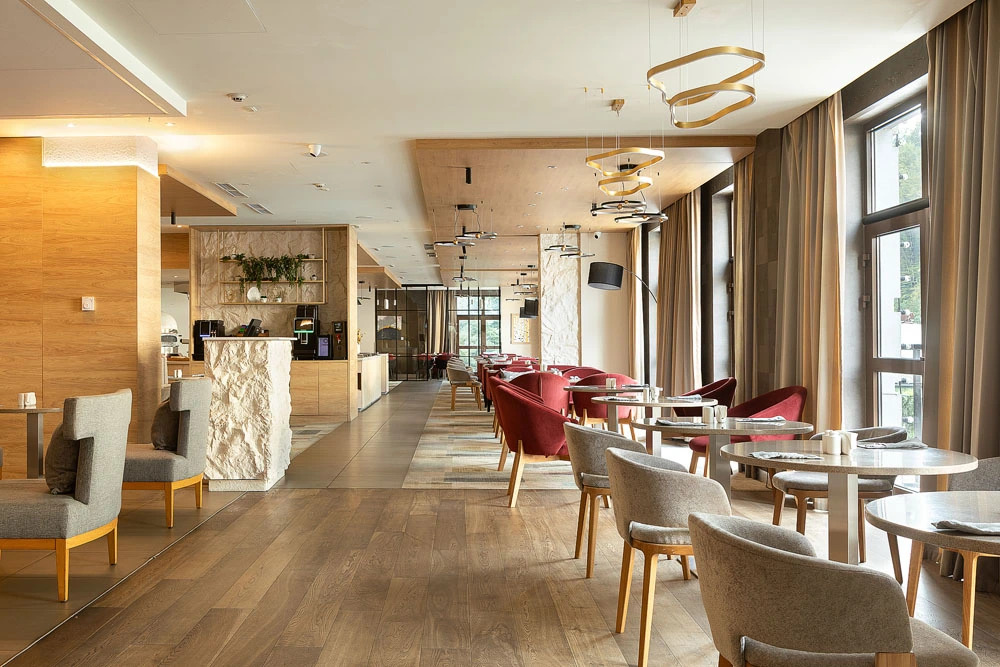 Насладиться традиционными блюдами русской и европейской кухни гости могут в ресторане «Сиблис». В нем накрываются завтраки, дополненные по выходным дням игристым вином. Также для гостей работает бар.