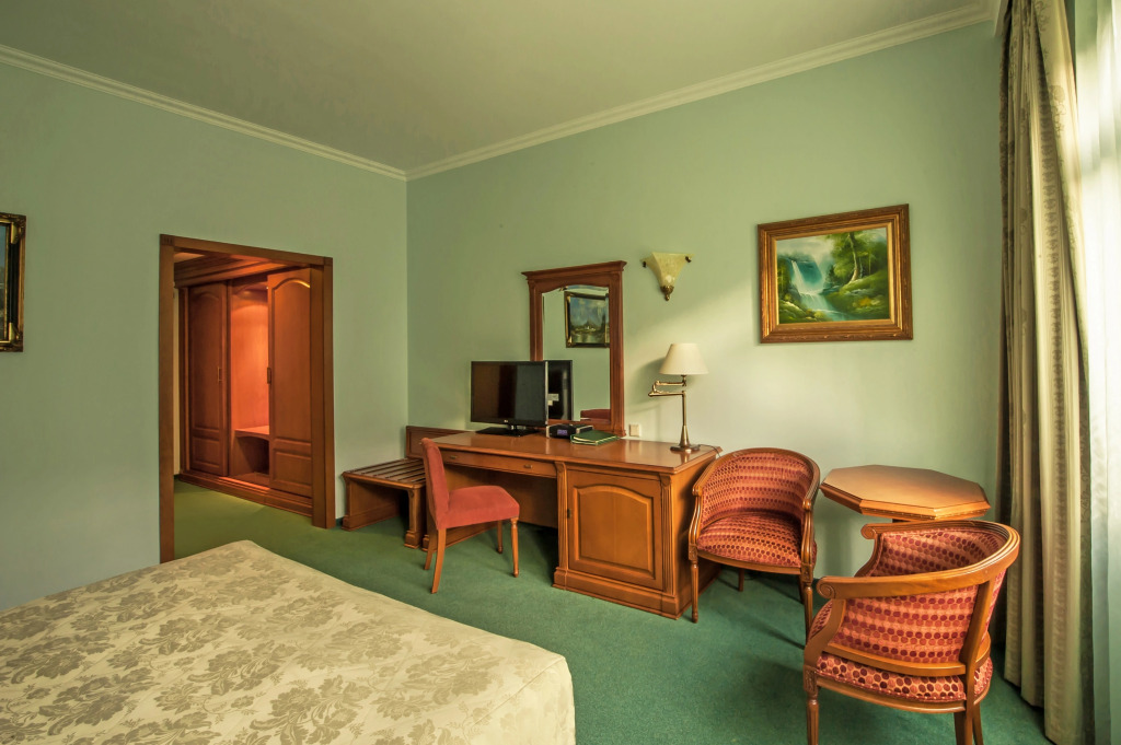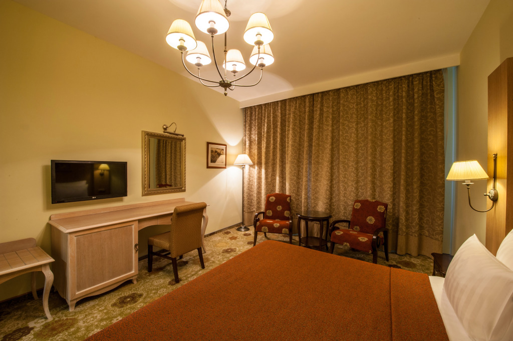 В номер возможно предоставить одно дополнительное место (на взрослого или ребёнка от 5 до 11 лет включительно). Стоимость рассчитывается индивидуально по запросу в отеле.