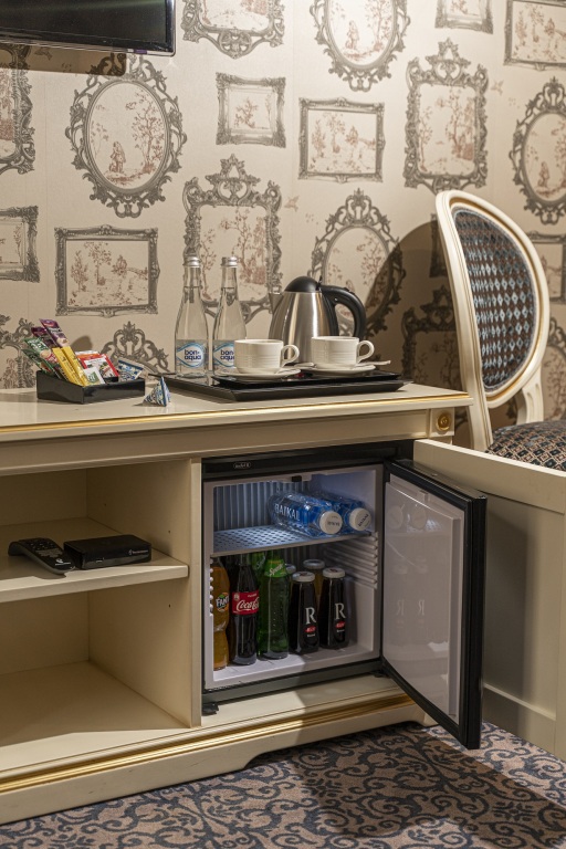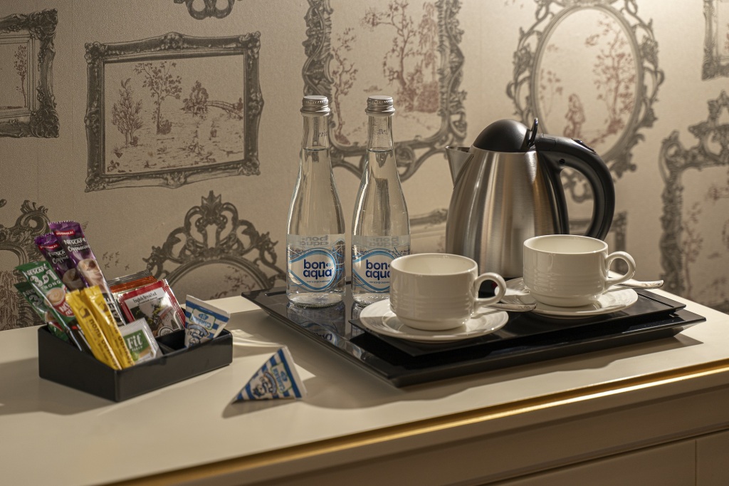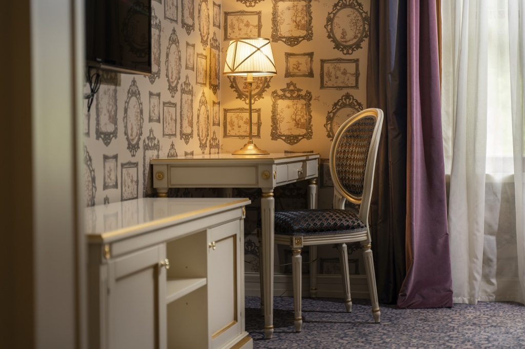 Номера укомплектованы бельем, полотенцами и халатами, а также косметикой Valentin Yudashkin. Гостям доступны капсульная кофемашина и гладильные принадлежности.