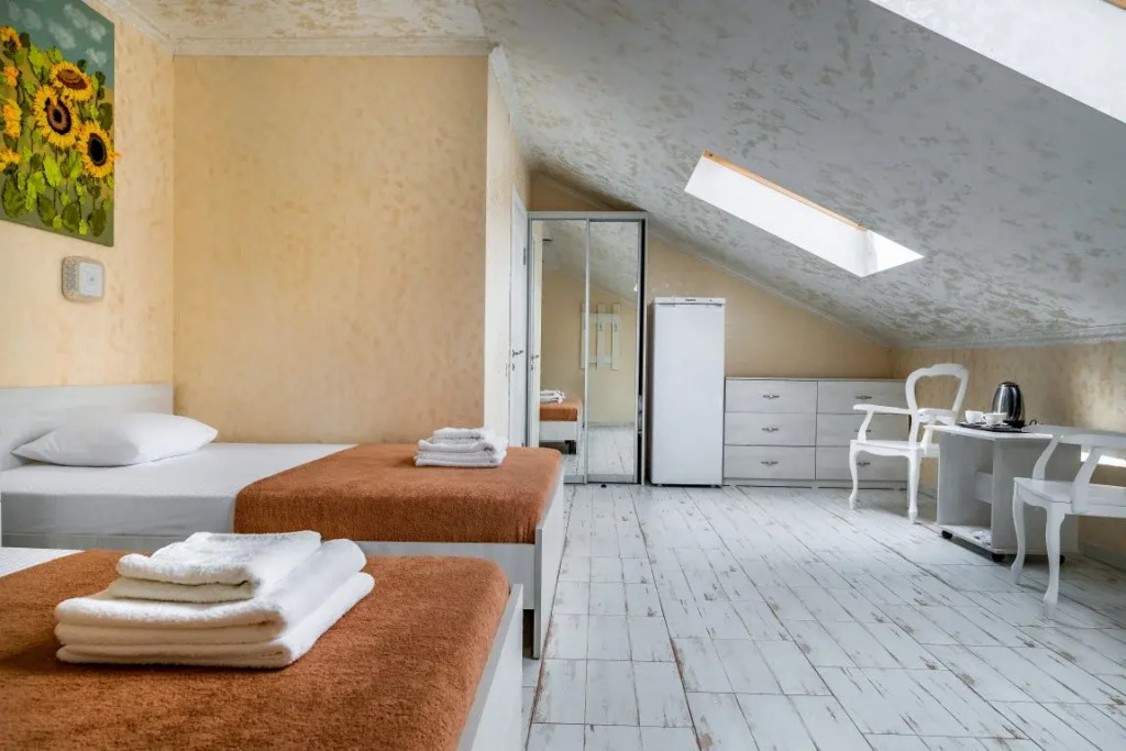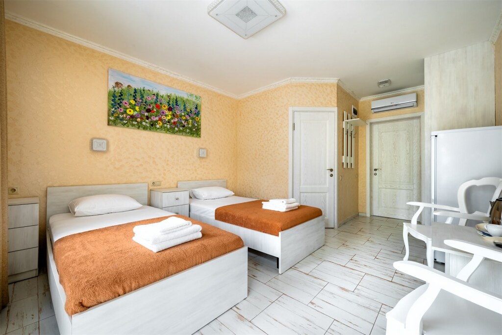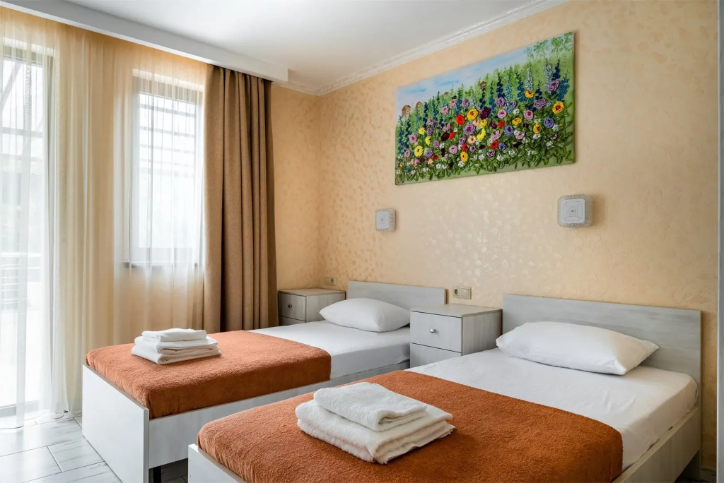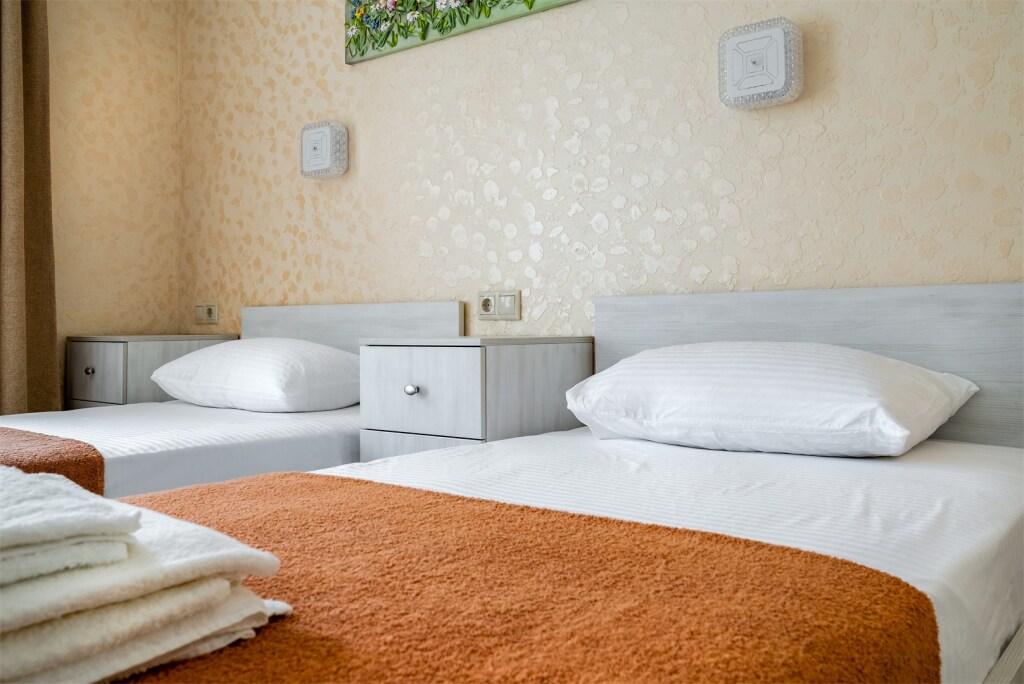 Номер очень светлый и уютный. Кровать большая, белоснежное постельное белье, атмосфера комфортного отдыха.