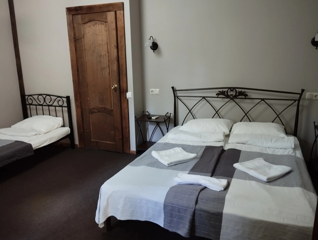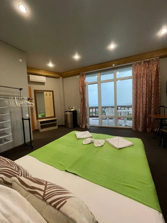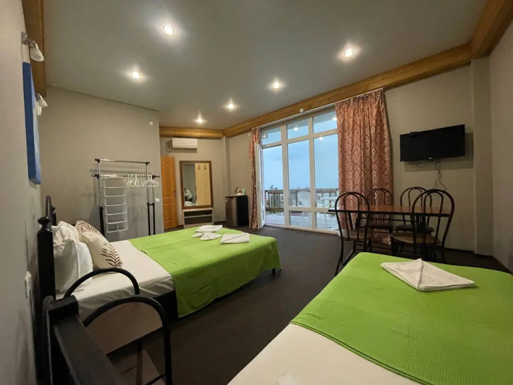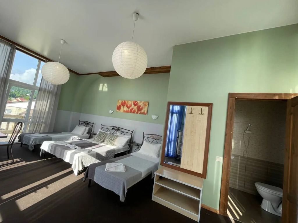 у нас был семейный с двумя комнатами и балконом , номера большие, чистые,до моря 5минут пешком,хотя сам гостевой дом расположен в тихом месте,нас встретили на трансфере, хозяйка очень приветливая,куча полотенец, есть огромная терраса на крыше. подряд двум людям помыться сложно, вода долго греется, придётся подождать,это единственный минус