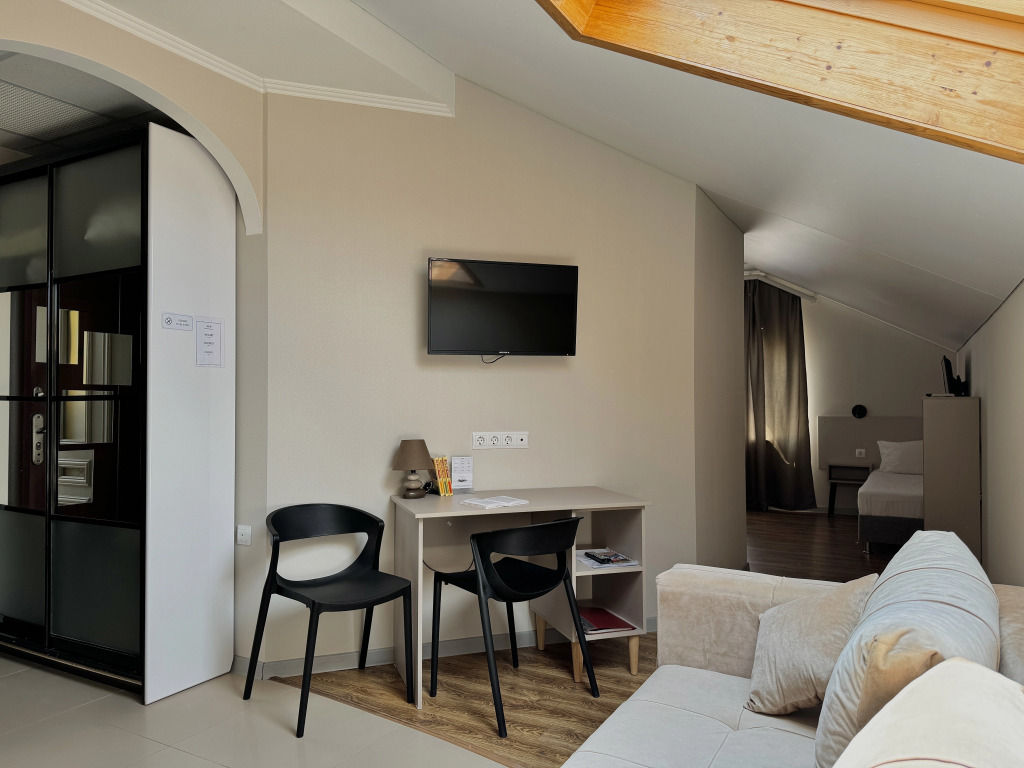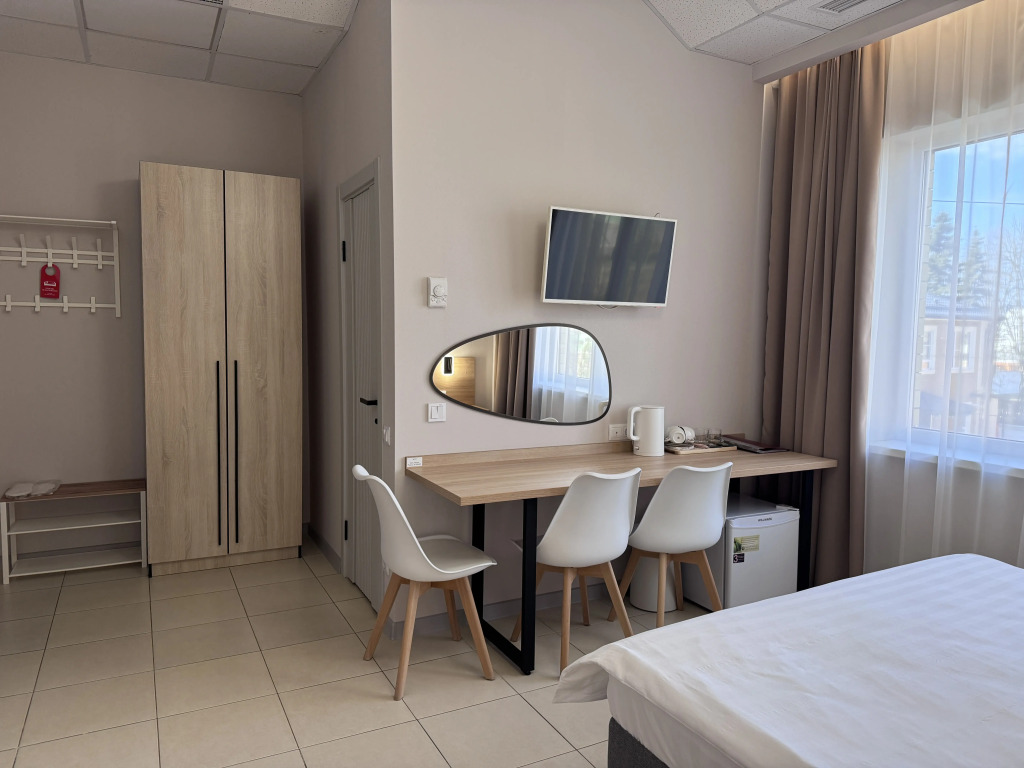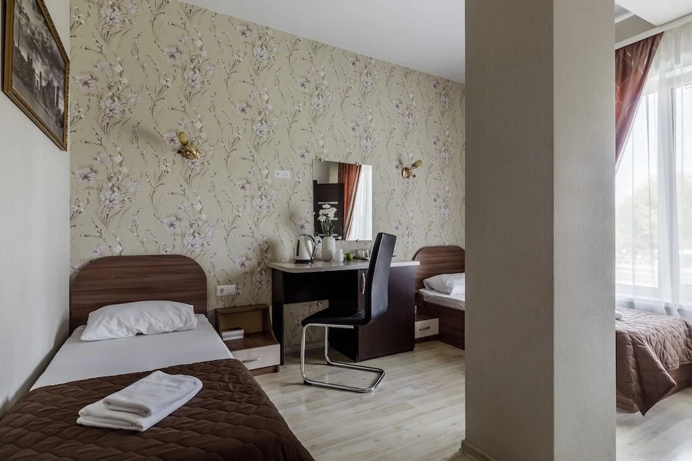 Во всех номерах есть: постельное бельё, кондиционер, холодильник, электрический чайник и чай, мини-бар, телевизор с плоским экраном, фен, тапочки, полотенца, средства личной гигиены. Уборка номеров осуществляется ежедневно.