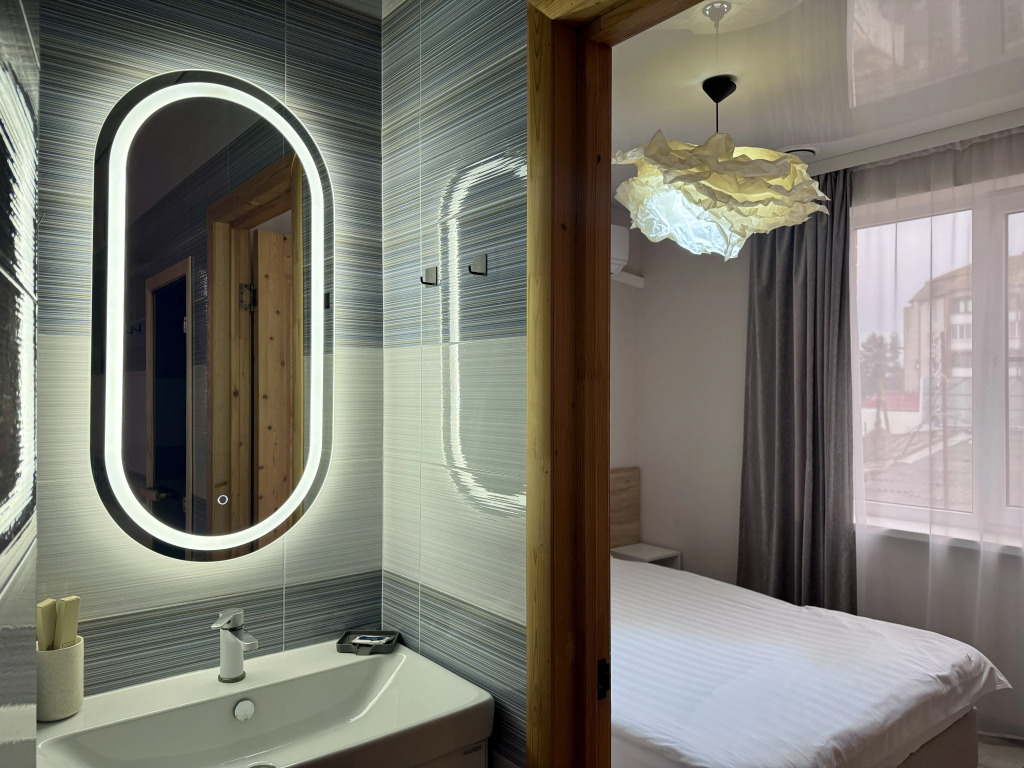 Отель предлагает своим гостям номера с кроватями, собственным санузлом с душевой кабиной.