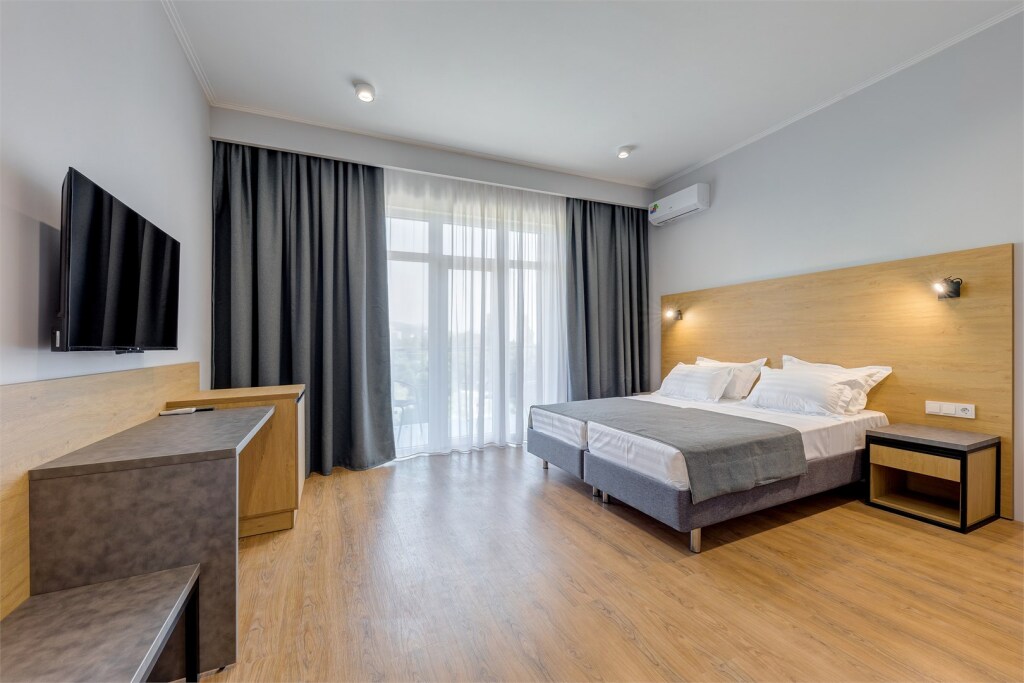 В номере гостей ждут телевизор. Оснащение зависит от выбранной категории номера.