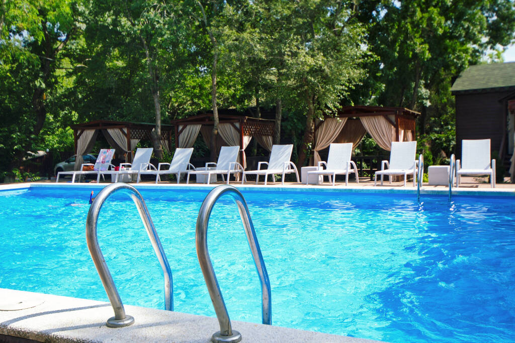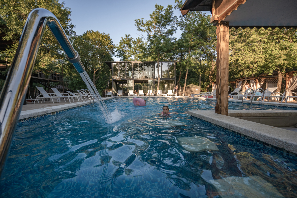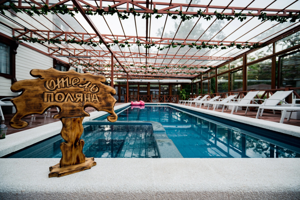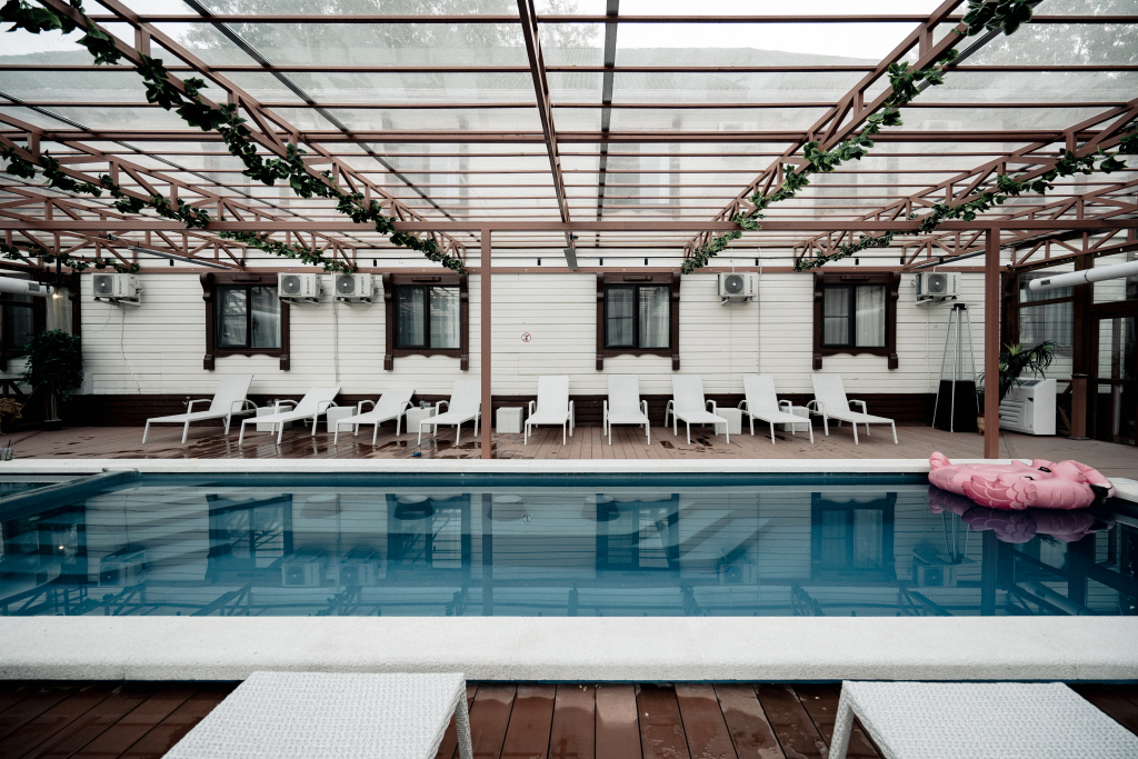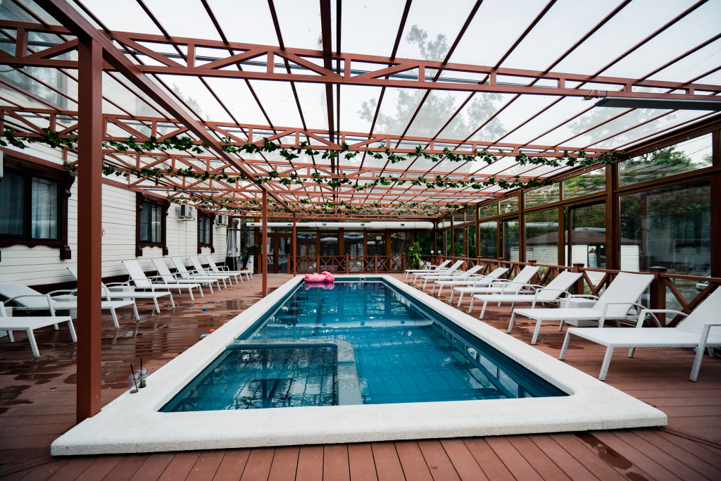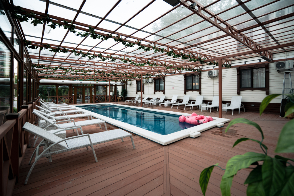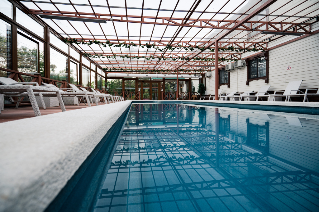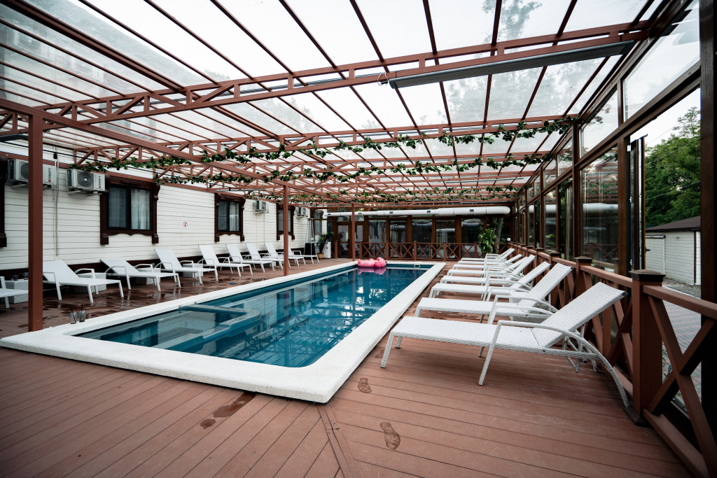 На территории отеля находится два подогреваемых бассейна: один открытый сезонный 16х8 м, другой 12х4 м с детской зоной, который полностью застеклён и работает круглый год.