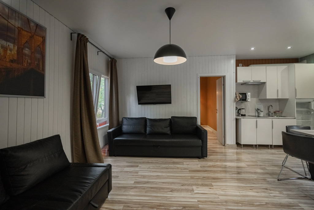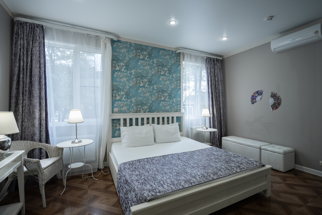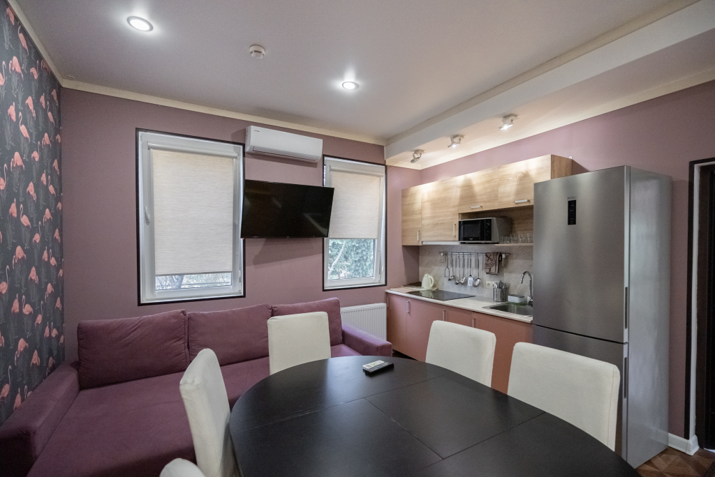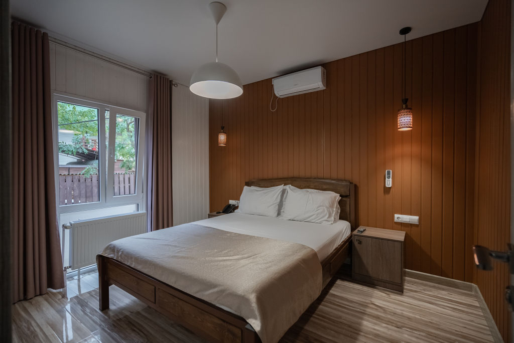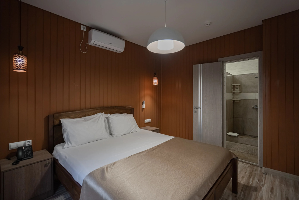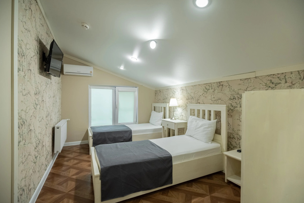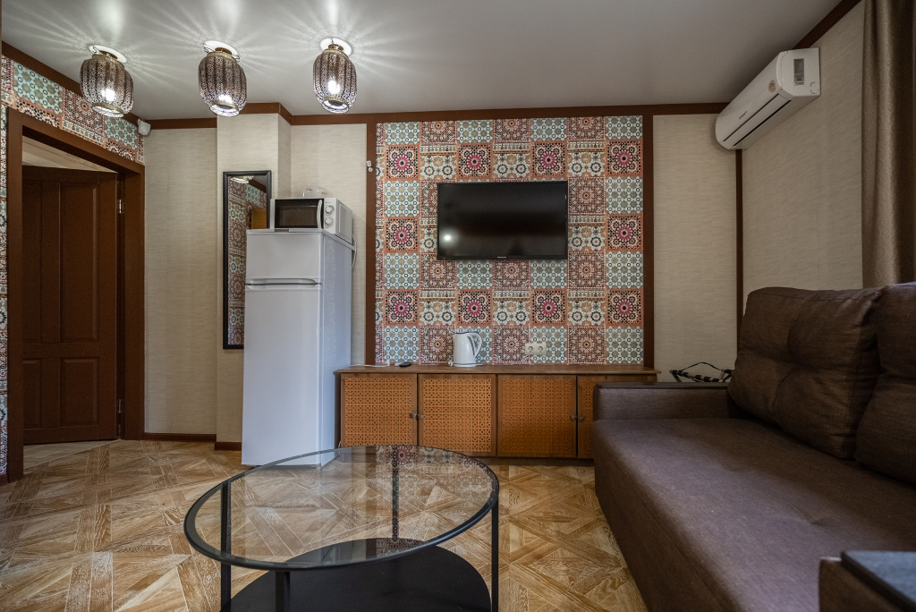 Каждый номер оборудован современной мебелью, посудой, СВЧ, сплит-системой, спутниковым ТВ, санузлом с душем.