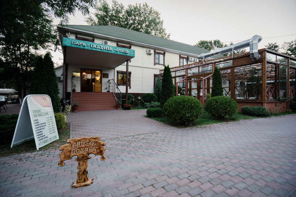 Парк-Отель «Поляна» расположен в посёлке Дивноморское, в пешей доступности от центрального пляжа. Парк-отель находится в лесной зоне на берегу реки Мезыбь, но в то же время непосредственно в черте села Дивноморское.
