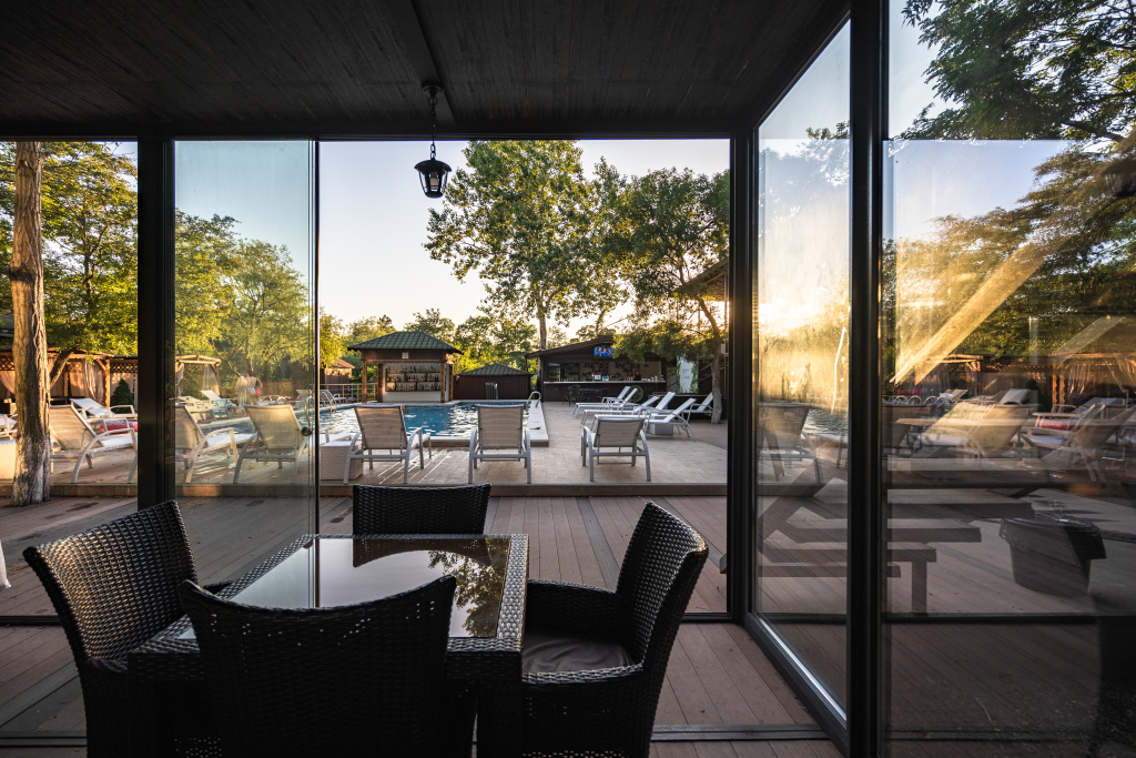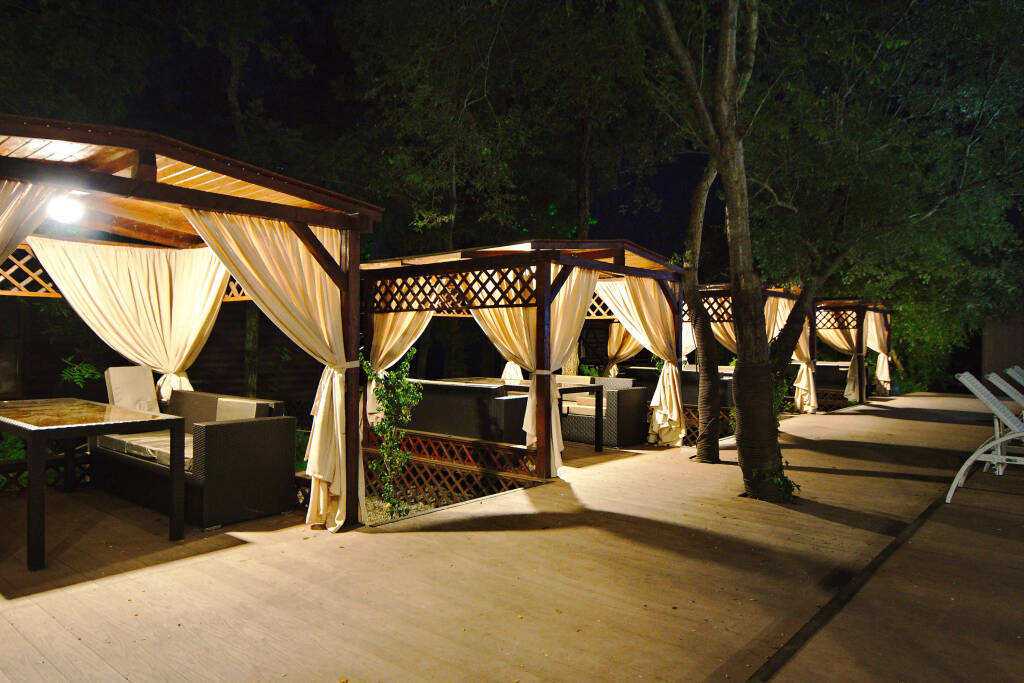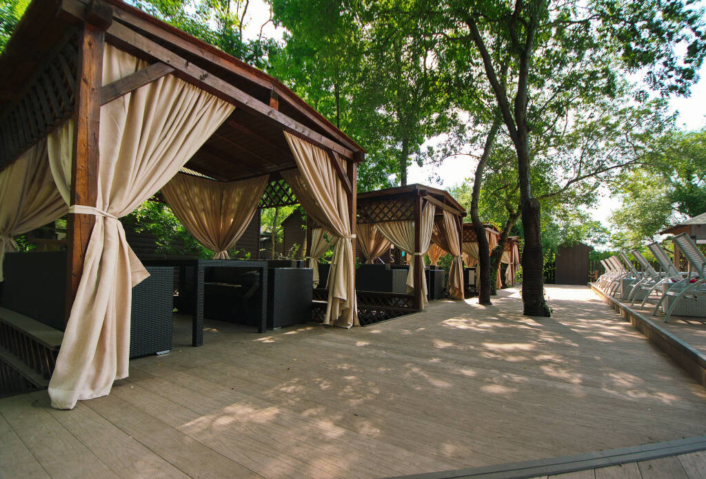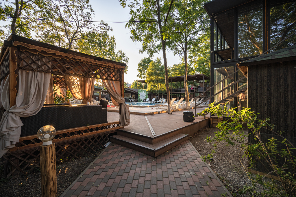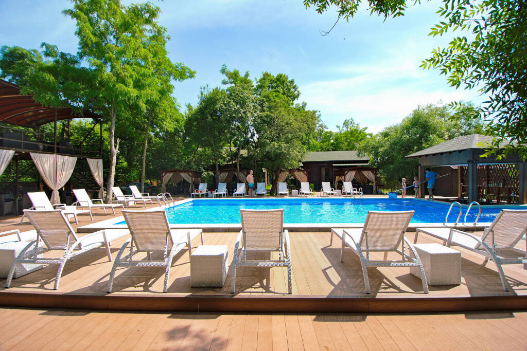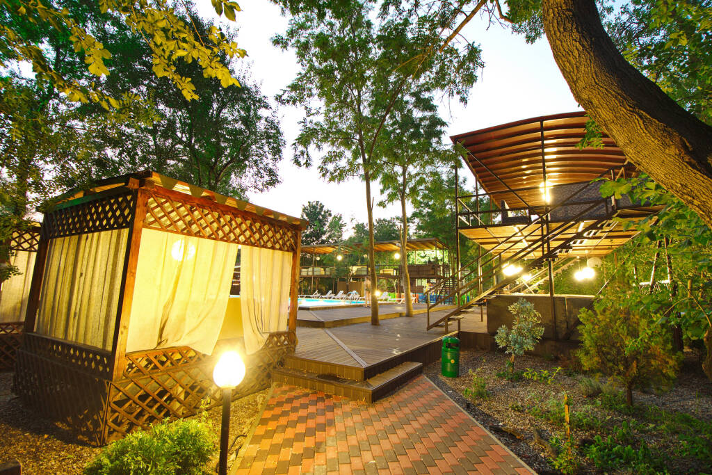 В стоимость проживания включено: доступ в бассейны, мангальные зоны в виде, парковка. В летний сезон бесплатно проводятся анимационные и развлекательные мероприятия, в том числе турниры по большому теннису и мини-футболу на спортивной площадке, а также по стрельбе из лука или винтовки в тире.