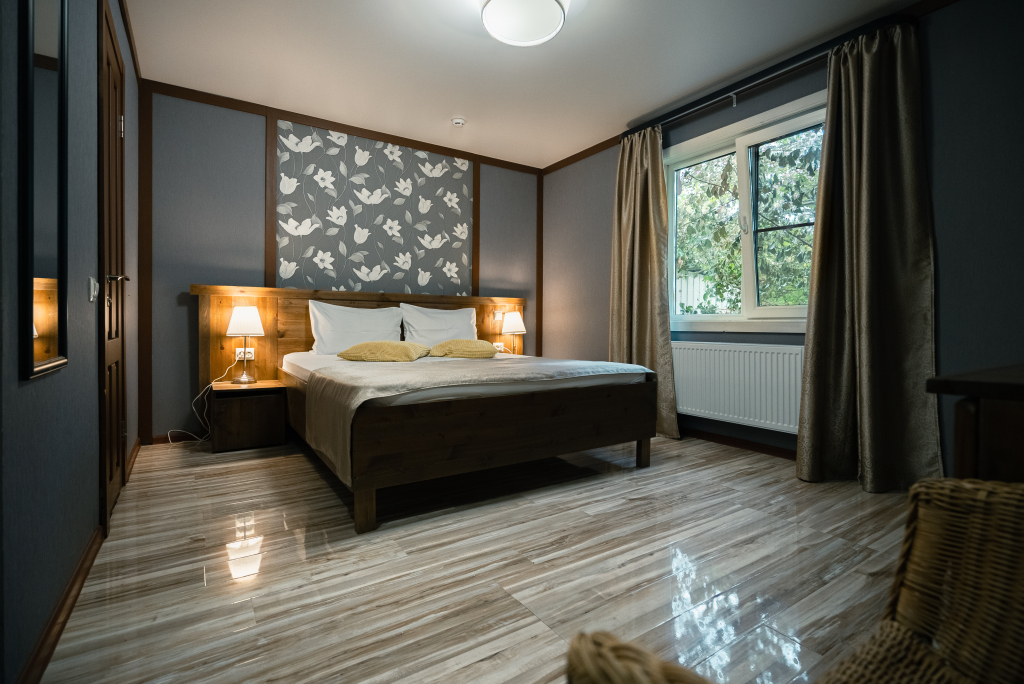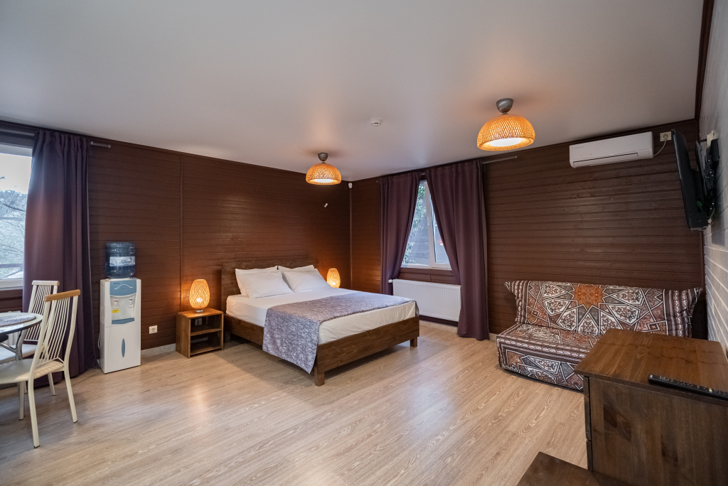 Для проживания представлены 4-х, 6-ти местные коттеджи, а также номера различной категории (стандарт, комфорт, люкс, апартаменты, вилла). При каждом коттедже имеется своя площадка с мангалом и мини-террасой.