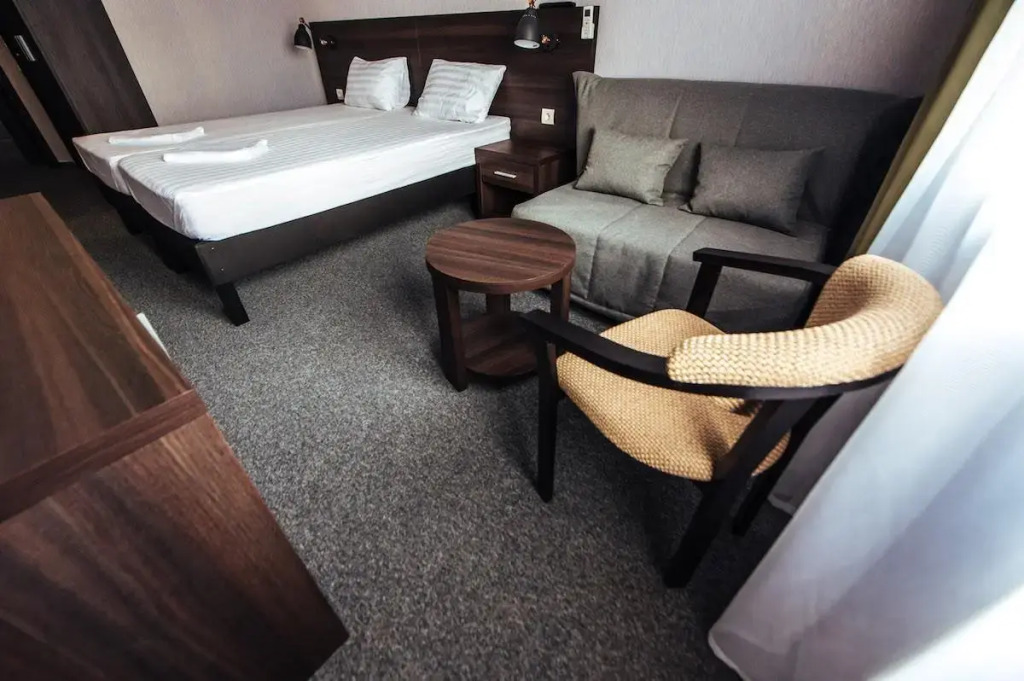 Если вы путешествуете на машине, припарковаться можно будет на парковке рядом. Также для гостей в отеле: баня. Скучно не будет, ведь в отеле к услугам отдыхающих боулинг. Для тех, кто не представляет отдых без водных удовольствий, есть бассейн и открытый бассейн.