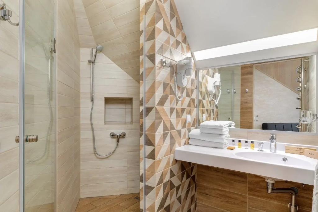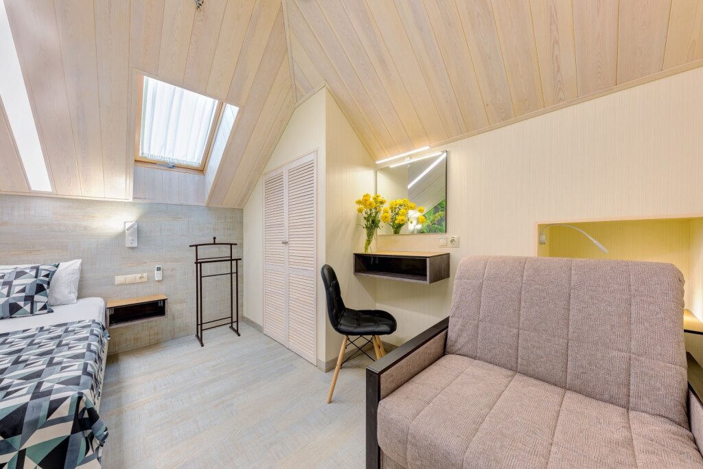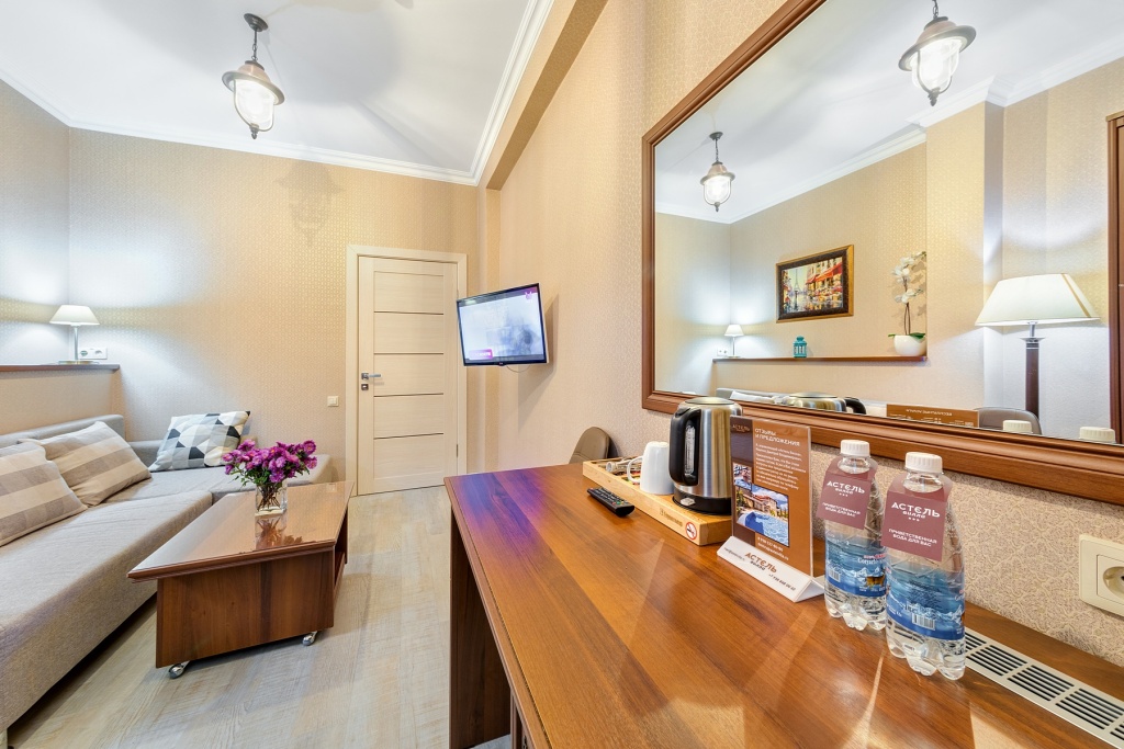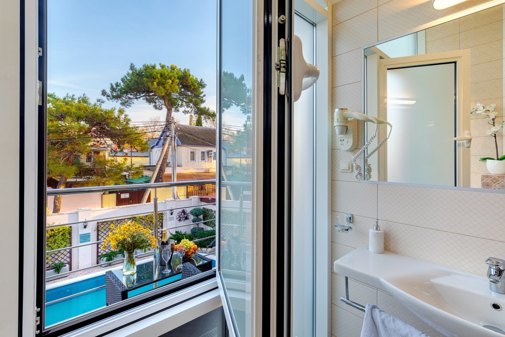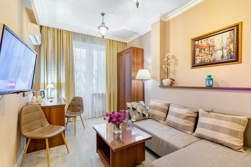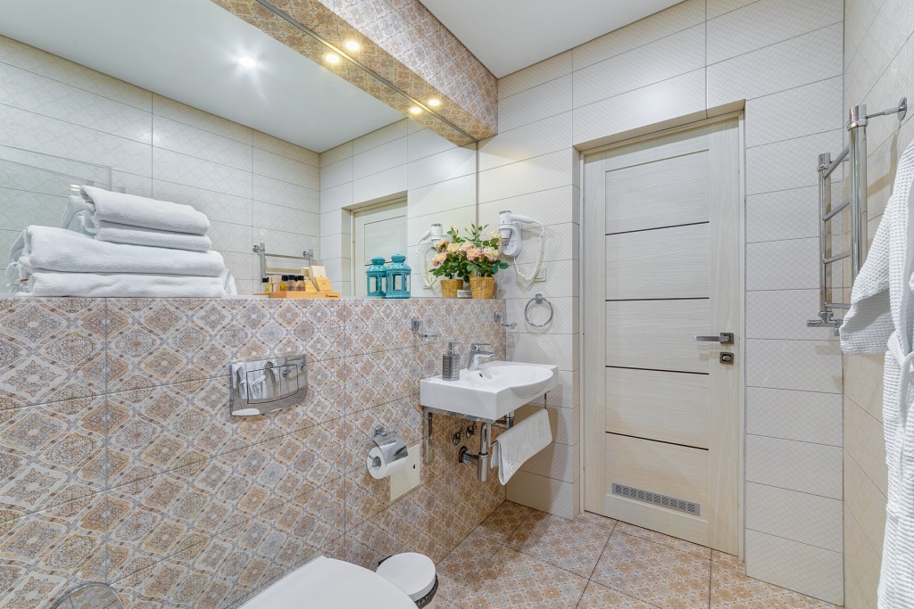 Подогреваемые полы и полотенцесушители имеются в каждой ванной комнате номеров. Есть звукоизоляция стен и ковровое покрытие.