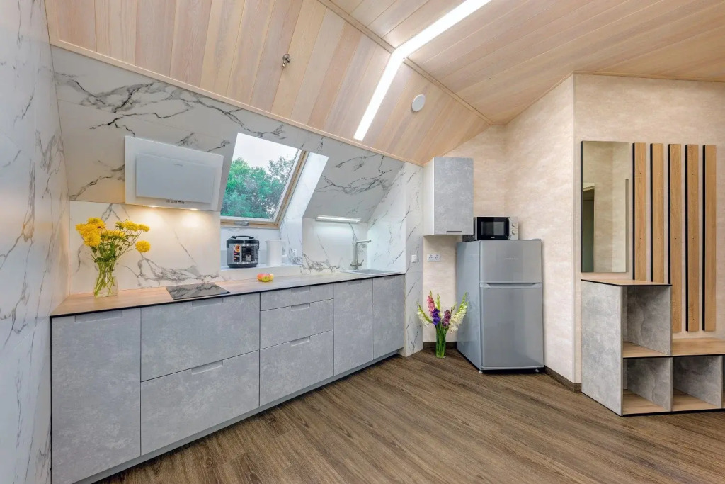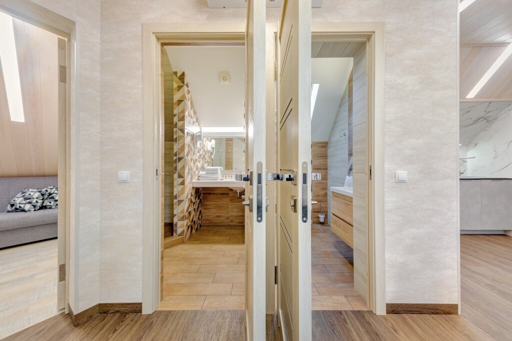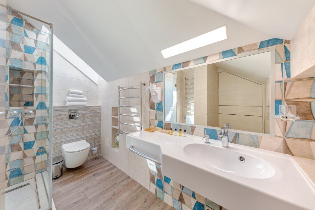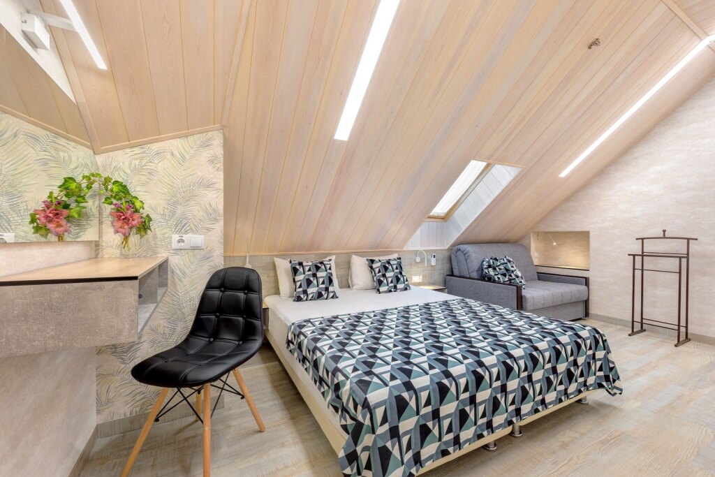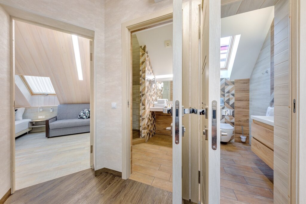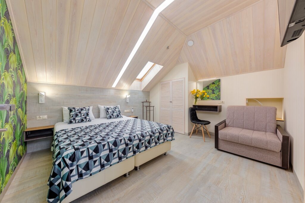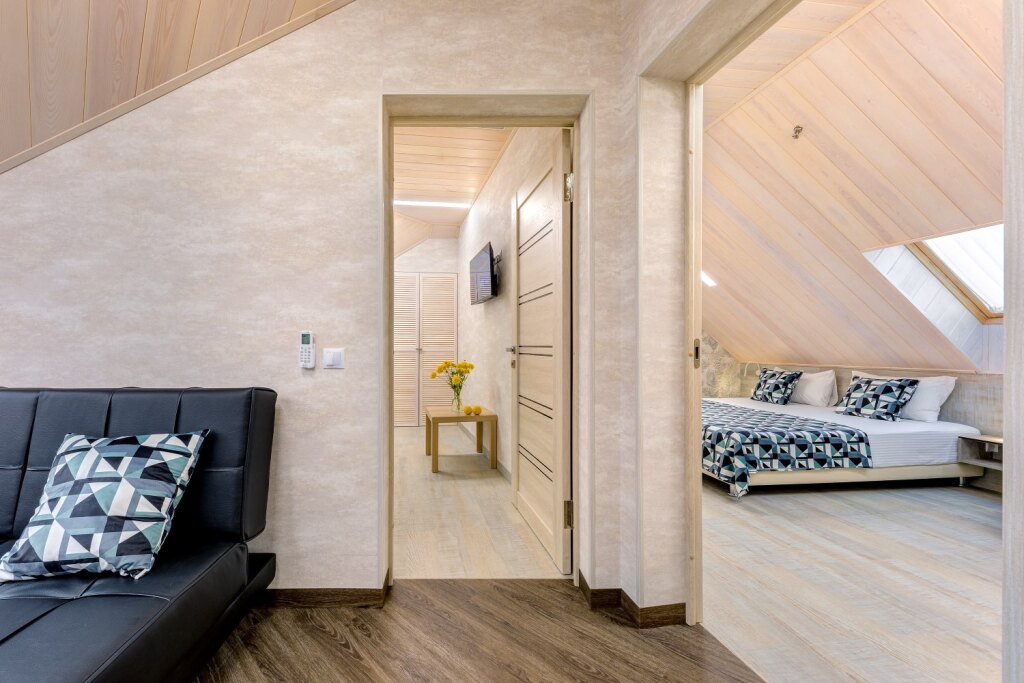 Подогреваемые полы и полотенцесушители имеются в каждой ванной комнате номеров. Есть звукоизоляция стен и ковровое покрытие.